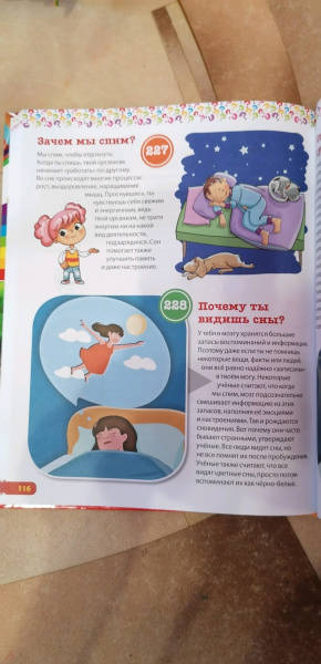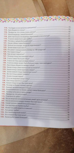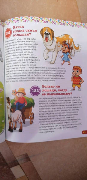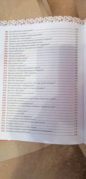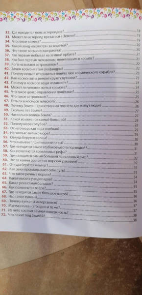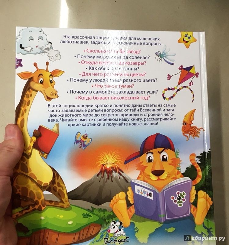ОписаниеЭта красочная энциклопедия для маленьких любознашек, задающих бесконечные вопросы: - Сколько на небе звёзд? - Почему морская вода солёная? - Откуда взялись динозавры? - Как общаются слоны? - Для чего растениям цветы? - Почему у людей глаза разного цвета? - Что такое туман? - Почему в самолёте закладывает уши? - Когда бывает високосный год? В этой энциклопедии кратко и понятно даны ответы на самые часто задаваемые детьми вопросы: от тайн Вселенной и загадок животного мира до секретов природы и строения человека. Читайте вместе с ребёнком нашу книгу, рассматривайте яркие картинки и получайте новые знания!Эта красочная энциклопедия для маленьких любознашек, задающих бесконечные вопросы: - Сколько на небе звёзд? - Почему морская вода солёная? - Откуда взялись динозавры? - Как общаются слоны? - Для чего растениям цветы? - Почему у людей глаза разного цвета? - Что такое туман? - Почему в самолёте закладывает уши? - Когда бывает високосный год? В этой энциклопедии кратко и понятно даны ответы на самые часто задаваемые детьми вопросы: от тайн Вселенной и загадок животного мира до секретов природы и строения человека. Читайте вместе с ребёнком нашу книгу, рассматривайте яркие картинки и получайте новые знания!