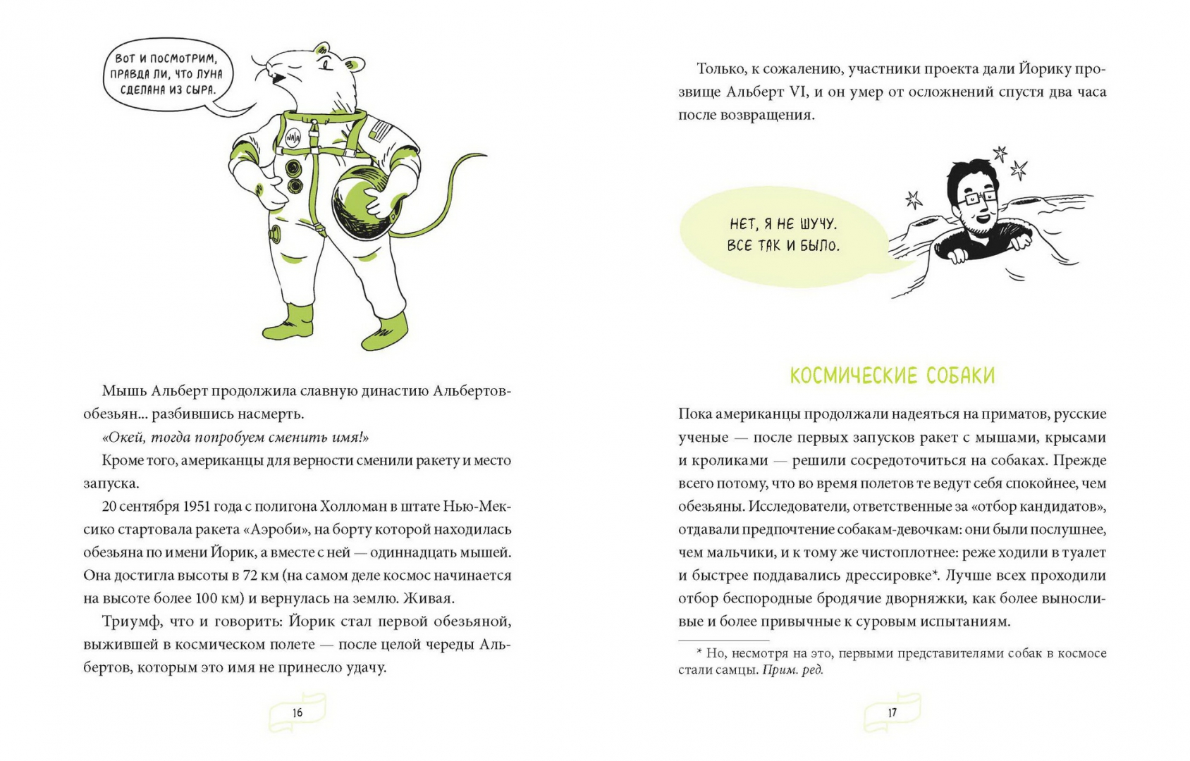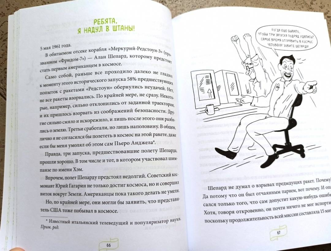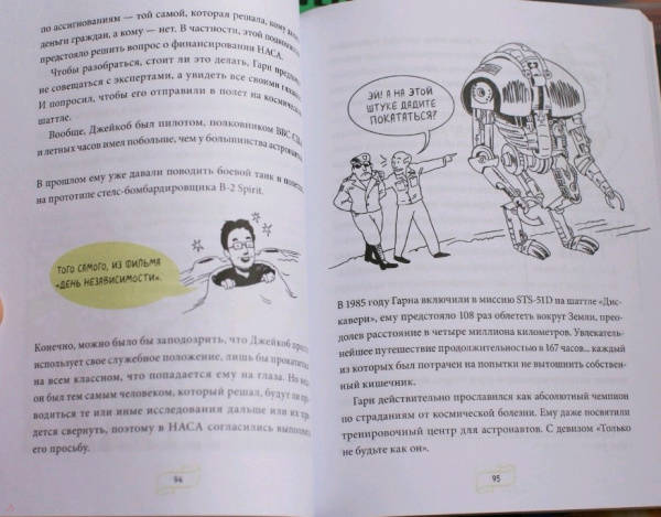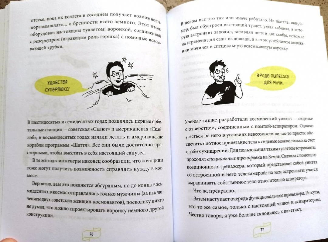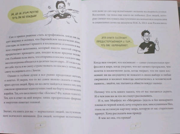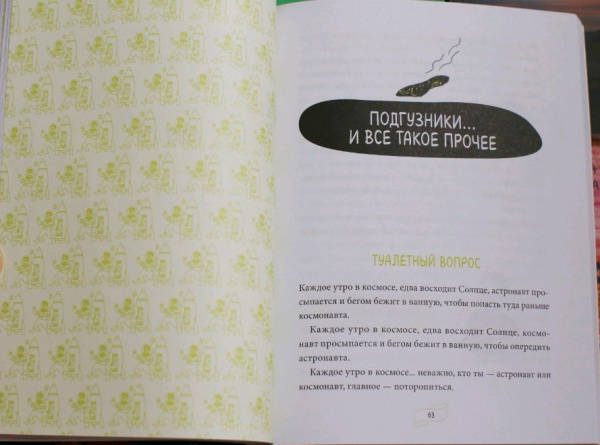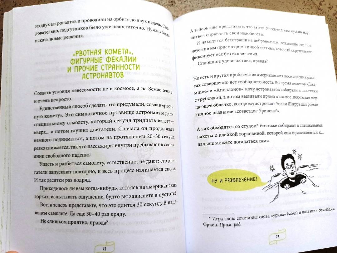 ОписаниеИстория освоения космоса складывается не только из геройств и достижений, но и (прежде всего!) из глупых ошибок, неудач и бытовых неурядиц. Астрофизик и популяризатор науки Лука Перри без прикрас рассказывает об изнанке космических путешествий и быта космонавтов.Как на земной орбите оказался обычный дворовый пес?Почему в космосе можно... утонуть?Как устроен туалет на космическом корабле?Как вернуться с Луны с помощью фломастера?Ответы на эти и другие необычные вопросы вы узнаете из книги. Как говорится, поехали!От автораВряд ли на свете найдется много тех, кого совсем не привлекает идея путешествий на борту космического корабля. Тех, кто воскликнул бы: «Космос? Фу, какая гадость!» Тех, кто в ответ на мой вопрос лишь презрительно фыркнет и энергично помотает головой.Когда вам говорят, что космонавт — самая увлекательная профессия в мире, когда уверяют, что нет ничего прекраснее, чем полеты в космические дали, когда твердят, что ни один космонавт ни на секундочку не пожалел о своем выборе и любые свершения в космосе навсегда запечатлелись в человеческой памяти... знайте, вас пытаются обвести вокруг пальца. Потому что есть много такого, что от вас пытаются скрыть. И о чем вам ни за что не станут рассказывать.Для кого эта книгаДля подростков, которые интересуются научно-популярной литературой вообще и космосом в частности.Для родителей, которые хотят, чтобы ребенок совмещал приятное с полезным: обучался, развлекаясь.СвернутьИстория освоения космоса складывается не только из геройств и достижений, но и (прежде всего!) из глупых ошибок, неудач и бытовых неурядиц. Астрофизик и популяризатор науки Лука Перри без прикрас рассказывает об изнанке космических путешествий и быта космонавтов.Как на земной орбите оказался обычный дворовый пес?Почему в космосе можно... утонуть?Как устроен туалет на космическом корабле?Как вернуться с Луны с помощью фломастера?Ответы на эти и другие необычные вопросы вы узнаете из книги. Как говорится, поехали!От автораВряд ли на свете найдется много тех, кого совсем не привлекает идея путешествий на борту космического корабля. Тех, кто воскликнул бы: «Космос? Фу, какая гадость!» Тех, кто в ответ на мой вопрос лишь презрительно фыркнет и энергично помотает головой.Когда вам говорят, что космонавт — самая увлекательная профессия в мире, когда уверяют, что нет ничего прекраснее, чем полеты в космические дали, когда твердят, что ни один космонавт ни на секундочку не пожалел о своем выборе и любые свершения в космосе навсегда запечатлелись в человеческой памяти... знайте, вас пытаются обвести вокруг пальца. Потому что есть много такого, что от вас пытаются скрыть. И о чем вам ни за что не станут рассказывать.Для кого эта книгаДля подростков, которые интересуются научно-популярной литературой вообще и космосом в частности.Для родителей, которые хотят, чтобы ребенок совмещал приятное с полезным: обучался, развлекаясь.СвернутьСвернуть