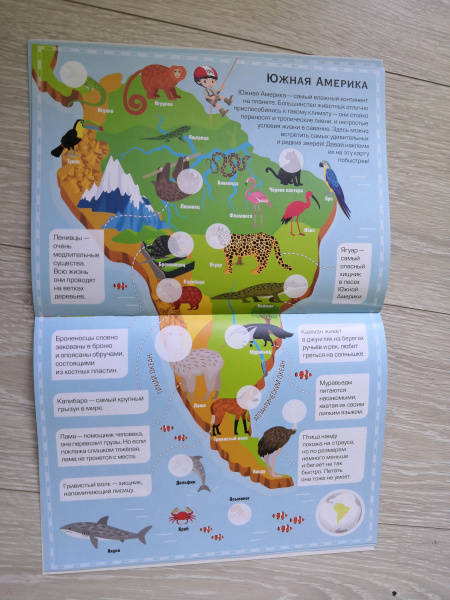 ОписаниеЭтот атлас станет первым путеводителем для вашего ребёнка в путешествии по нашей удивительной планете. Листая его страницы, маленький читатель познакомится с континентами и странами, флагами и достопримечательностями, национальными костюмами и традициями разных народов. Он побывает во всех, даже самых отдалённых уголках света, познакомится с животным и растительным миром. Любопытные факты и яркие картинки сделают это путешествие очень увлекательным и интересным. А многочисленные наклейки превратят изучение Земли в занимательную игру — ваш малыш просто не выпустит из рук этот атлас!Вперёд — приключения ждут самых любознательных!Для дошкольного возраста.Этот атлас станет первым путеводителем для вашего ребёнка в путешествии по нашей удивительной планете. Листая его страницы, маленький читатель познакомится с континентами и странами, флагами и достопримечательностями, национальными костюмами и традициями разных народов. Он побывает во всех, даже самых отдалённых уголках света, познакомится с животным и растительным миром. Любопытные факты и яркие картинки сделают это путешествие очень увлекательным и интересным. А многочисленные наклейки превратят изучение Земли в занимательную игру — ваш малыш просто не выпустит из рук этот атлас!Вперёд — приключения ждут самых любознательных!Для дошкольного возраста.