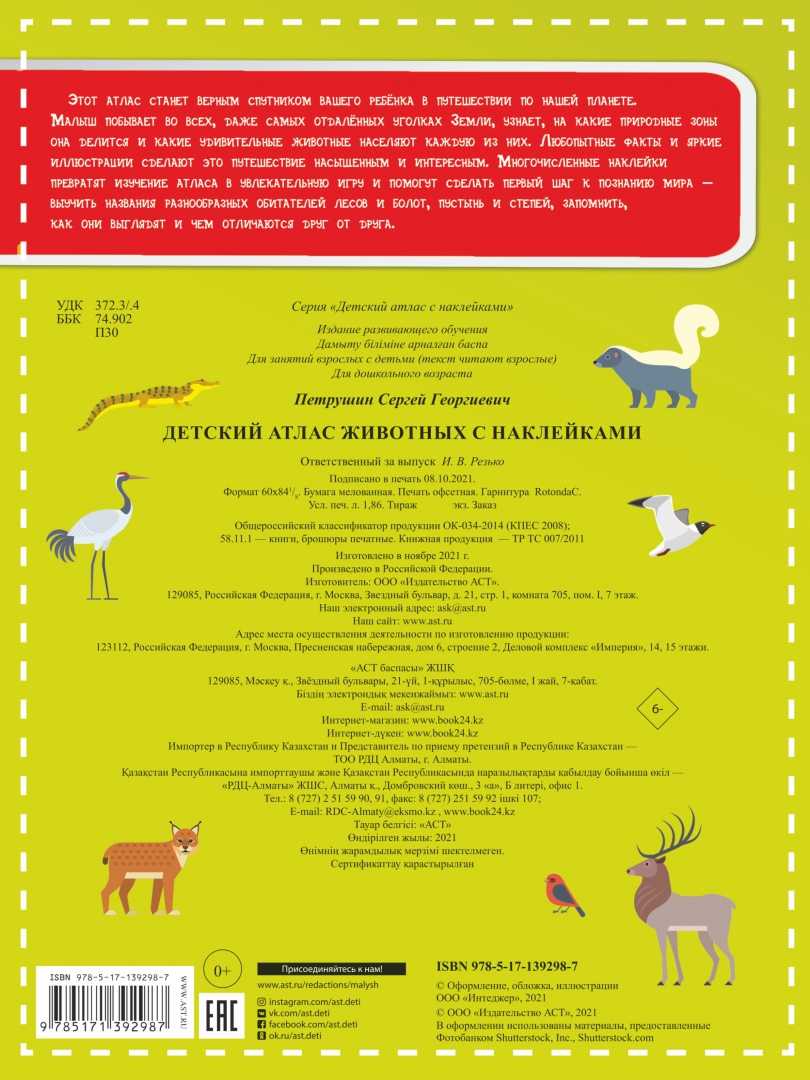 Сергей Петрушин: Детский атлас животных, с наклейками
