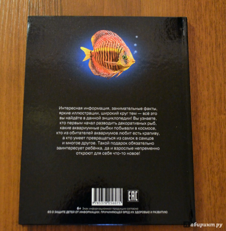 ОписаниеИнтересная информация, занимательные факты, яркие иллюстрации, широкий круг тем - всё это вы найдёте в данной энциклопедии! Вы узнаете, кто первым начал разводить декоративных рыб, какие аквариумные рыбки побывали в космосе, кто из обитателей аквариумов любит есть крапиву, а кто умеет превращаться из самок в самцов и многое другое. Такой подарок обязательно заинтересует ребёнка, да и взрослые непременно откроют для себя что-то новое!Интересная информация, занимательные факты, яркие иллюстрации, широкий круг тем - всё это вы найдёте в данной энциклопедии! Вы узнаете, кто первым начал разводить декоративных рыб, какие аквариумные рыбки побывали в космосе, кто из обитателей аквариумов любит есть крапиву, а кто умеет превращаться из самок в самцов и многое другое. Такой подарок обязательно заинтересует ребёнка, да и взрослые непременно откроют для себя что-то новое!