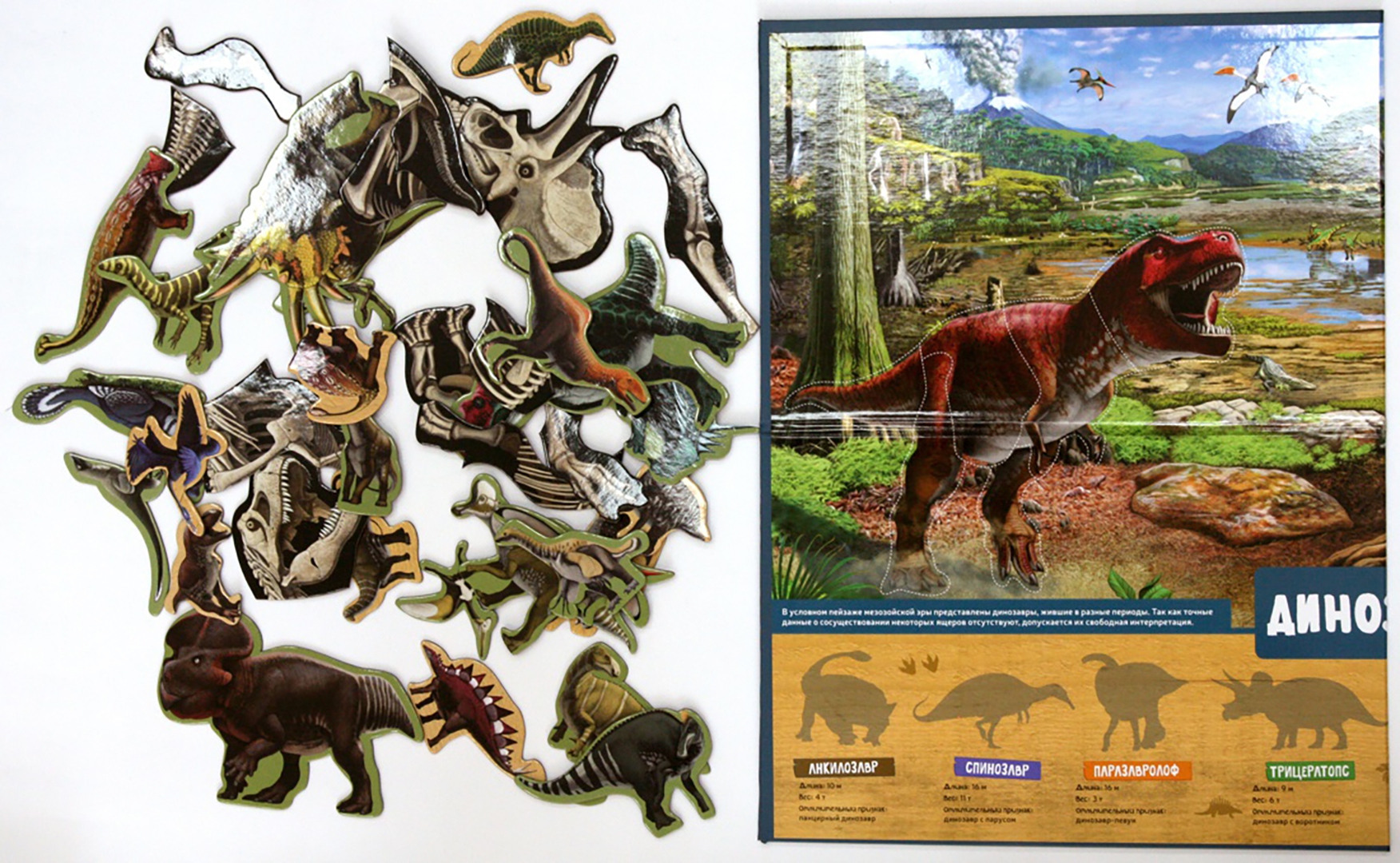 ОписаниеТебе выпал шанс отправиться поиски динозавров.Ты узнаешь, где сохранились окаменелые остатки этих древних ящеров, как палеонтологи сохраняют и реконструируют их скелеты, какой была наша планета в те далекие времена, когда на земле царили динозавры.Ты познакомишься со свирепыми аллозаврами и тираннозаврами, мирными диплодоками и брахиозаврами, а также древними птицами и обитателями морей.39 магнитов.Для детей среднего школьного возраста.Тебе выпал шанс отправиться поиски динозавров.Ты узнаешь, где сохранились окаменелые остатки этих древних ящеров, как палеонтологи сохраняют и реконструируют их скелеты, какой была наша планета в те далекие времена, когда на земле царили динозавры.Ты познакомишься со свирепыми аллозаврами и тираннозаврами, мирными диплодоками и брахиозаврами, а также древними птицами и обитателями морей.39 магнитов.Для детей среднего школьного возраста.