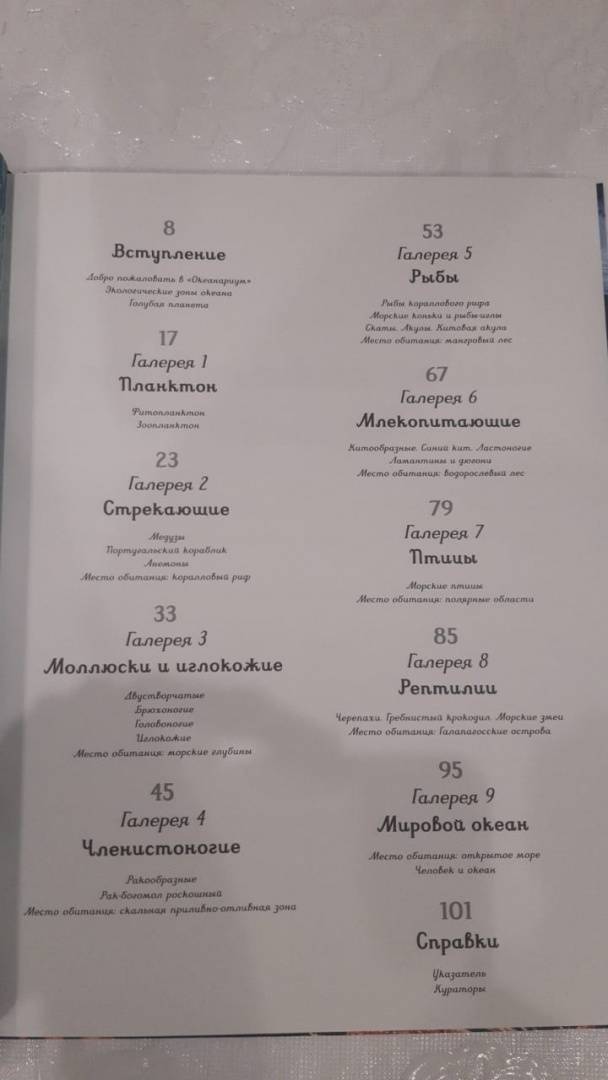 ОписаниеДобро пожаловать в наш «Океанариум»!Этот постоянно открытый музей приглашает посетителей в путешествие по Мировому океану – уникальной экосистеме, наполненной всевозможными формами жизни. Вы увидите множество морских обитателей – от микроскопического планктона и разноцветных медуз до удивительных глубоководных рыб и огромных китов. Океан – невероятная тайна, которую нам ещё только предстоит раскрыть.Заходите в наш музей и познакомьтесь с потрясающим подводным миром.Добро пожаловать в наш «Океанариум»!Этот постоянно открытый музей приглашает посетителей в путешествие по Мировому океану – уникальной экосистеме, наполненной всевозможными формами жизни. Вы увидите множество морских обитателей – от микроскопического планктона и разноцветных медуз до удивительных глубоководных рыб и огромных китов. Океан – невероятная тайна, которую нам ещё только предстоит раскрыть.Заходите в наш музей и познакомьтесь с потрясающим подводным миром.