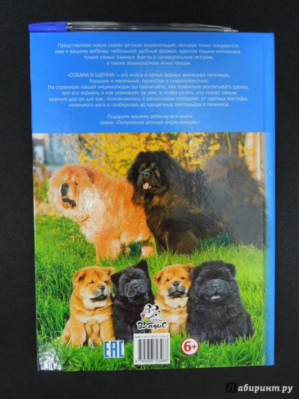 ОписаниеПредставляем новую серию детских энциклопедий, которая точно понравится вам и вашему ребёнку: небольшой удобный формат, краткая подача материала, только самые важные факты и занимательные истории, а также великолепные иллюстрации. "Собаки и щенки" - это книга о самых верных домашних питомцах, больших и маленьких, пушистых и гладкошёрстных. На страницах нашей энциклопедии вы прочитаете, как правильно воспитывать щенка, чем его кормить и как ухаживать за ним, а чтобы узнать, кто станет самым верным другом для вас, познакомьтесь с различными породами: от крупных мастифа,немецкого дога и сенбернара до крошечных той-терьера и пекинеса.Подарите вашему ребёнку все книги серии "Популярная детская энциклопедия"!Представляем новую серию детских энциклопедий, которая точно понравится вам и вашему ребёнку: небольшой удобный формат, краткая подача материала, только самые важные факты и занимательные истории, а также великолепные иллюстрации. "Собаки и щенки" - это книга о самых верных домашних питомцах, больших и маленьких, пушистых и гладкошёрстных. На страницах нашей энциклопедии вы прочитаете, как правильно воспитывать щенка, чем его кормить и как ухаживать за ним, а чтобы узнать, кто станет самым верным другом для вас, познакомьтесь с различными породами: от крупных мастифа,немецкого дога и сенбернара до крошечных той-терьера и пекинеса.Подарите вашему ребёнку все книги серии "Популярная детская энциклопедия"!