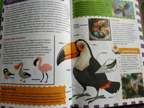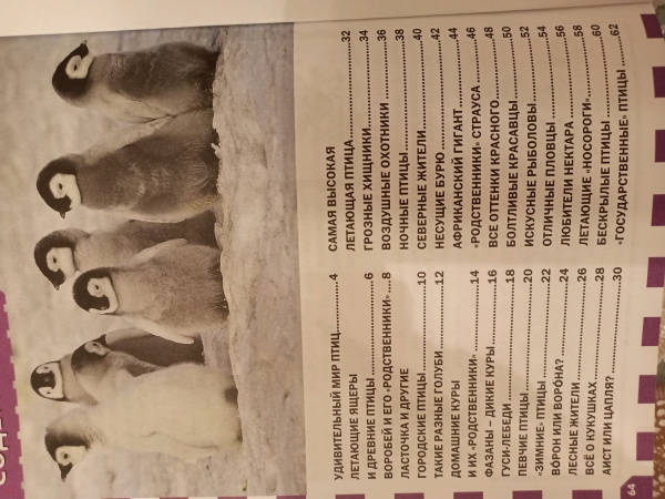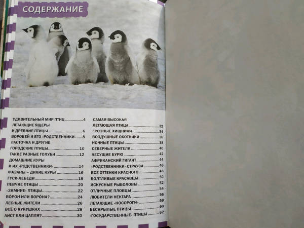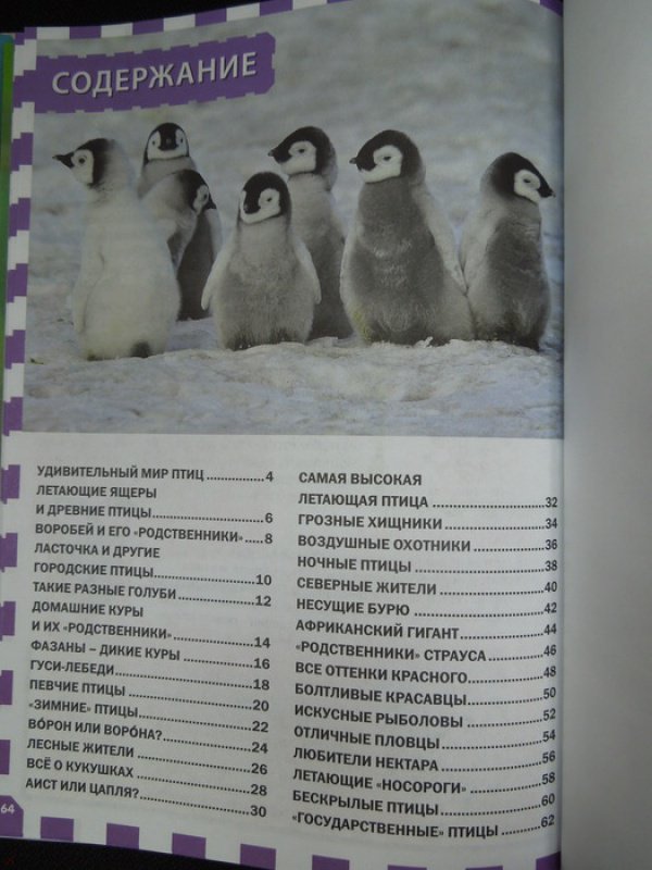 Описание"ПТИЦЫ" - это книга о пернатых обитателях нашей планеты: они населяют её повсюду, от снежных просторов до тропических лесов. На страницах нашей энциклопедии вы узнаете, чем отличается ворон от вороны, кто летает быстрее всех птиц, зачем тукану такой большой клюв и кто такой нанду, познакомитесь с пушистым киви, огромным страусом и симпатичными пингвинами."ПТИЦЫ" - это книга о пернатых обитателях нашей планеты: они населяют её повсюду, от снежных просторов до тропических лесов. На страницах нашей энциклопедии вы узнаете, чем отличается ворон от вороны, кто летает быстрее всех птиц, зачем тукану такой большой клюв и кто такой нанду, познакомитесь с пушистым киви, огромным страусом и симпатичными пингвинами.
