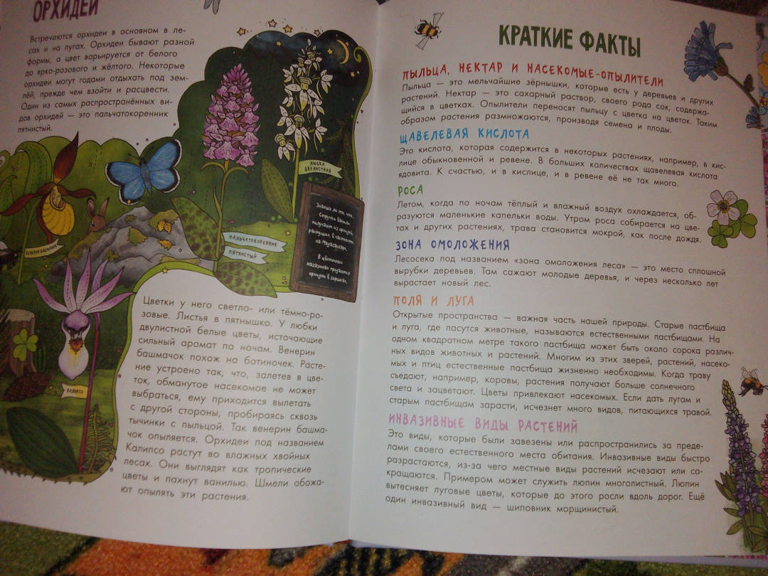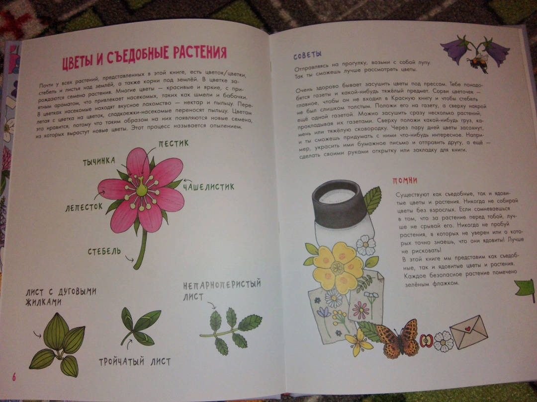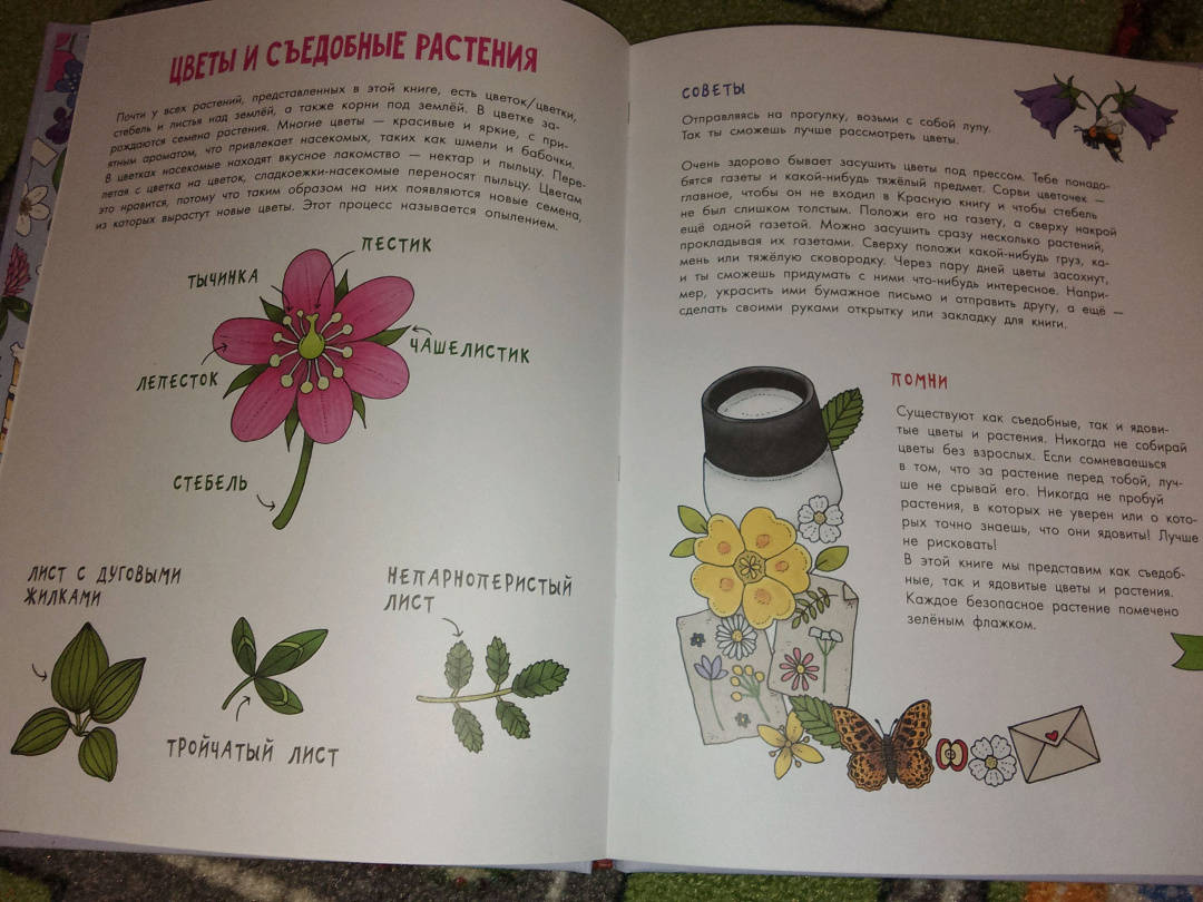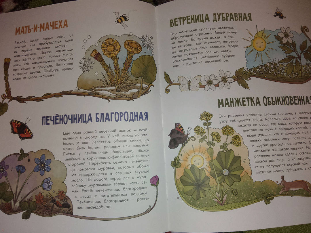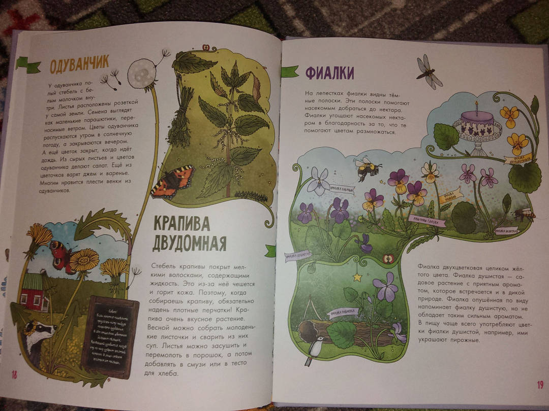 ОписаниеКнига "Цветы и растения" - часть серии "Моя первая книга", которая увлекательно знакомит детей с миром живой природы.На страницах этого издания читатели найдут множество цветов и растений, которые мы то и дело видим вокруг: подорожник, незабудка, шиповник, колокольчики, клевер, можжевельник, одуванчик, крапива и многие другие. На полях и у обочин дорог, в лесах, возле рек и озёр - всюду мы можем встретить невероятные растения (некоторые из них даже можно есть!).В книге представлены ёмкие, информативные факты и достоверные иллюстрации. Эмма Янссон написала множество детских книг о природе, животных и растениях. Она сама иллюстрирует свои книги, а подкрепляет все факты личными наблюдениями. В 2019 году книги из этой серии были номинированы на литературную премию за лучшие научно-популярные книги для детей.Для среднего школьного возраста.Книга "Цветы и растения" - часть серии "Моя первая книга", которая увлекательно знакомит детей с миром живой природы.На страницах этого издания читатели найдут множество цветов и растений, которые мы то и дело видим вокруг: подорожник, незабудка, шиповник, колокольчики, клевер, можжевельник, одуванчик, крапива и многие другие. На полях и у обочин дорог, в лесах, возле рек и озёр - всюду мы можем встретить невероятные растения (некоторые из них даже можно есть!).В книге представлены ёмкие, информативные факты и достоверные иллюстрации. Эмма Янссон написала множество детских книг о природе, животных и растениях. Она сама иллюстрирует свои книги, а подкрепляет все факты личными наблюдениями. В 2019 году книги из этой серии были номинированы на литературную премию за лучшие научно-популярные книги для детей.Для среднего школьного возраста.