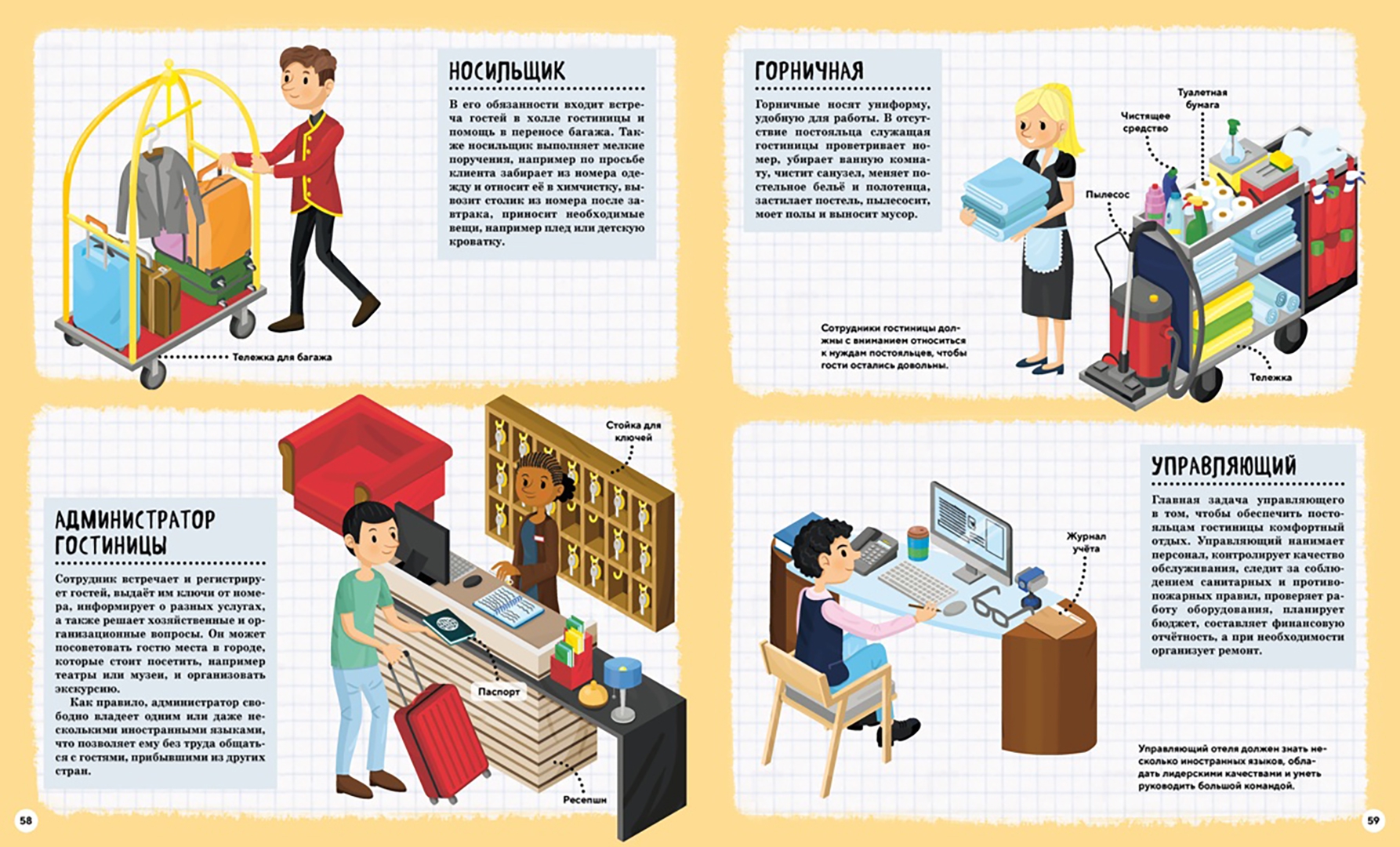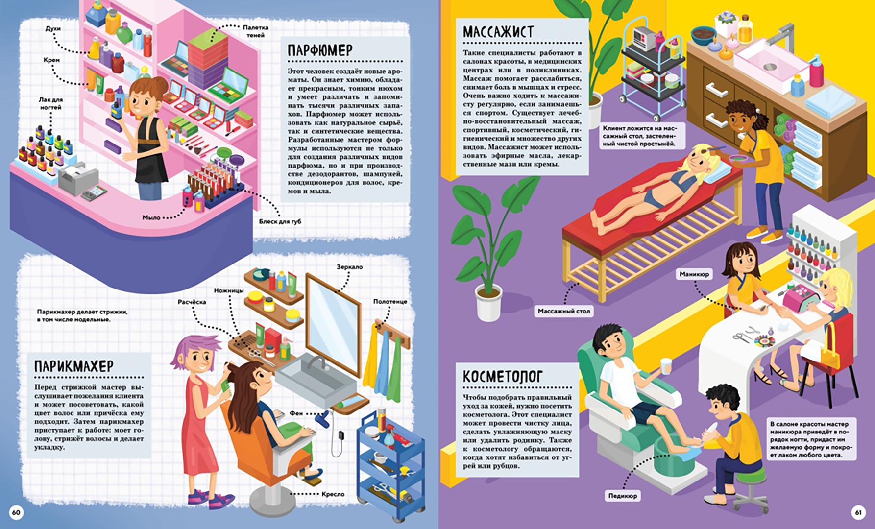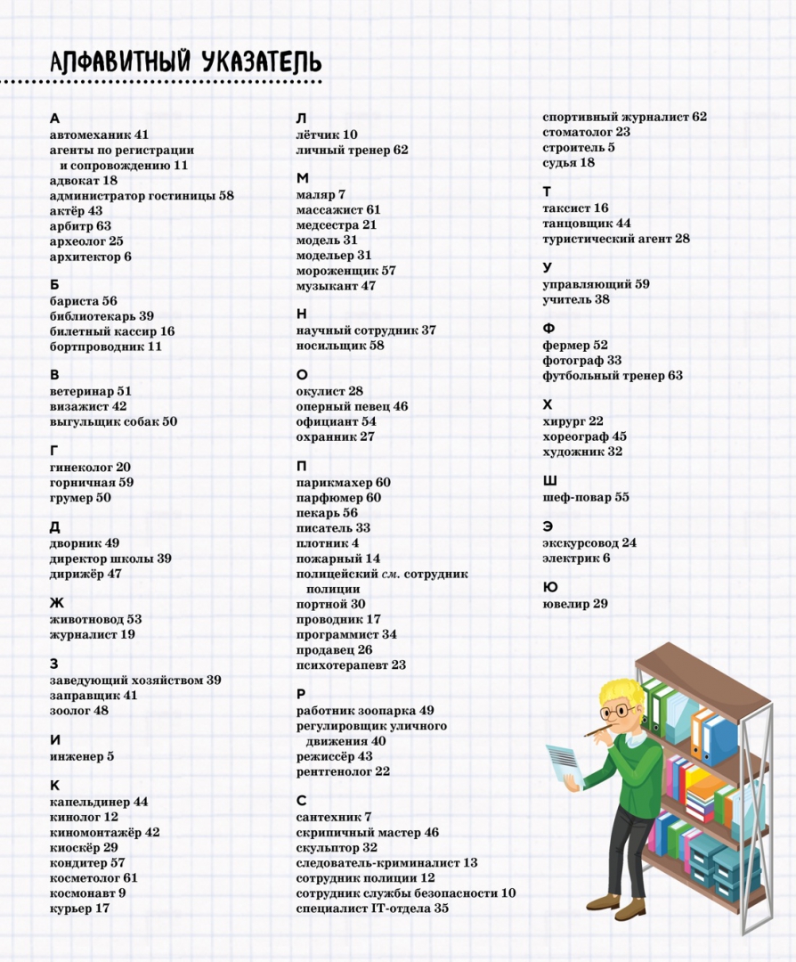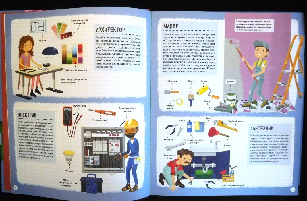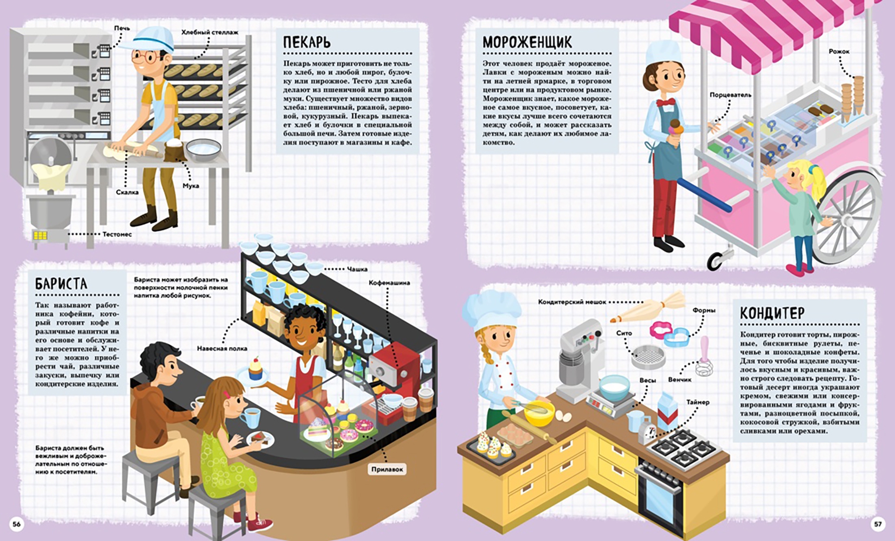 ОписаниеЧто входит в обязанности смотрителя зоопарка? Чем занимается монтажёр? Кто помогает запускать ракеты? А каким талантом должен обладать парфюмер? В этой книге представлено множество увлекательных профессий - от строителя до космонавта. Ваш ребёнок узнает, почему каждая из них важна и в чём заключается работа различных специалистов. А ещё он сможет представить, кем станет, когда будет большим!Что входит в обязанности смотрителя зоопарка? Чем занимается монтажёр? Кто помогает запускать ракеты? А каким талантом должен обладать парфюмер? В этой книге представлено множество увлекательных профессий - от строителя до космонавта. Ваш ребёнок узнает, почему каждая из них важна и в чём заключается работа различных специалистов. А ещё он сможет представить, кем станет, когда будет большим!
