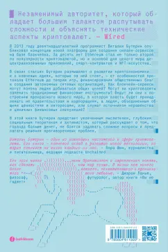 Объем, стр. 400 ISBN 978-5-6048295-8-5 Автор Бутерин Виталик, Проворова И. Переводчик Проворова И. Язык Русский Минимальный возраст 16+ Год издания книги 2023 Тип обложки Мягкий переплет Иллюстрации Черно-белые Вес, г 383г Размеры 210х140х31 мм - Отзывы