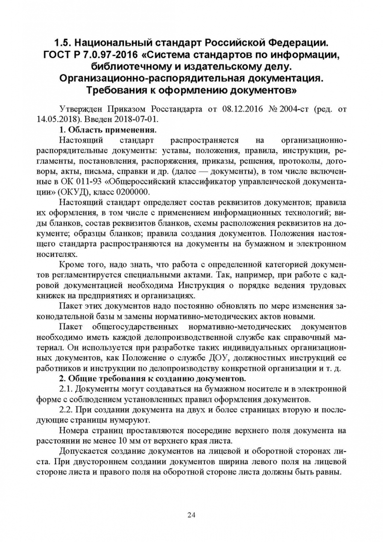 ОписаниеУчебное пособие составлено на основе программы учебной дисциплины "Документационное обеспечение управления" и предназначено для студентов учебных заведений среднего профессионального образования, обучающихся по специальностям: "Экономика и бухгалтерский учёт", "Право и организация социального обеспечения", "Правоохранительная деятельность" и др. В соответствии с требованиями ГОСТ Р 7.0.972016 рассмотрена система организационно-распорядительной документации (ОРД), документы которой выполняют типовые управленческие функции в каждой организации и являются правовой основой для работы с любой системой документов, в том числе с обращениями граждан. Подробно рассмотрены особенности всех видов устных и письменных обращений граждан и приведены примеры составления, оформления и организации работы с этими видами документов. Для текущего и итогового контроля разработан практикум с вопросами, тестом, заданиями.Соответствует современным требованиям Федерального государственного образовательного стандарта среднего профессионального образования и профессиональным квалификационным требованиям.Учебное пособие может быть полезным для преподавателей, руководителей малых предприятий, а также для обучающихся в Учебных центрах дополнительного профессионального образования, подготовки и переподготовки, повышения квалификации и всех, кто самостоятельно желает овладеть базовыми знаниями в области управленческого делопроизводства и делопроизводства по обращениям граждан. Структура и подробное изложение материала позволяют использовать учебное пособие при любой форме обучения: очной, заочной, дистанционной и в формате онлайн.СвернутьУчебное пособие составлено на основе программы учебной дисциплины "Документационное обеспечение управления" и предназначено для студентов учебных заведений среднего профессионального образования, обучающихся по специальностям: "Экономика и бухгалтерский учёт", "Право и организация социального обеспечения", "Правоохранительная деятельность" и др. В соответствии с требованиями ГОСТ Р 7.0.972016 рассмотрена система организационно-распорядительной документации (ОРД), документы которой выполняют типовые управленческие функции в каждой организации и являются правовой основой для работы с любой системой документов, в том числе с обращениями граждан. Подробно рассмотрены особенности всех видов устных и письменных обращений граждан и приведены примеры составления, оформления и организации работы с этими видами документов. Для текущего и итогового контроля разработан практикум с вопросами, тестом, заданиями.Соответствует современным требованиям Федерального государственного образовательного стандарта среднего профессионального образования и профессиональным квалификационным требованиям.Учебное пособие может быть полезным для преподавателей, руководителей малых предприятий, а также для обучающихся в Учебных центрах дополнительного профессионального образования, подготовки и переподготовки, повышения квалификации и всех, кто самостоятельно желает овладеть базовыми знаниями в области управленческого делопроизводства и делопроизводства по обращениям граждан. Структура и подробное изложение материала позволяют использовать учебное пособие при любой форме обучения: оч