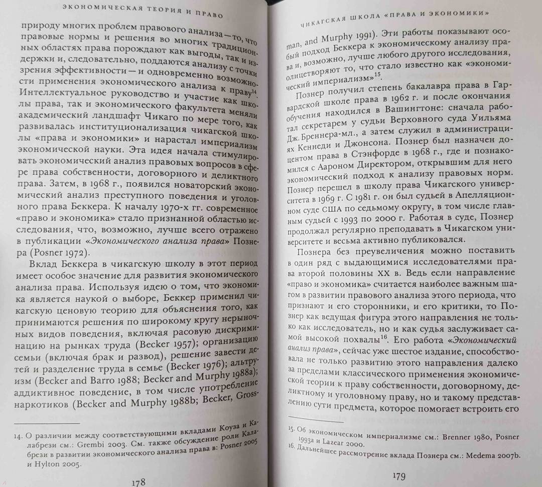 ОписаниеЭто расширенное второе издание оказавшей большое влияние на научное сообщество книги Николаса Меркуро и Стивена Медемы "Экономическая теория и право", публикация которой в 1998 г. ознаменовала собой выход наиболее полного анализа различных школ мысли в рамках активно развивающейся области права и экономики. Каждая из этих конкурирующих, но тем не менее дополняющих друг друга традиций переосмысливала изучение права и раскрывала ключевые экономические последствия правовой среды. Книга остается верной масштабу и целям первого издания, но также учитывает эволюцию, произошедшую в данной области.Авторами рассматриваются чикагская школа, теория общественного выбора, институциональное "право и экономика" и новая институциональная экономическая теория. В новой главе анализируется литература в области права и экономики, касающаяся социальных норм и на сегодняшний день составляющая неотъемлемую часть каждой научной школы. Также была расширена глава, посвященная нью-хейвенскому подходу и подходу современного гражданского республиканизма. Эти главы дополняются исследованием австрийской школы права и экономики. Предоставляя читателю краткое описание общих контуров каждой школы, книга освещает основополагающие идеи данной области, формулируя важные выводы не только для экономики и права, но и для политологии, философии, государственного управления и социологии.СвернутьЭто расширенное второе издание оказавшей большое влияние на научное сообщество книги Николаса Меркуро и Стивена Медемы "Экономическая теория и право", публикация которой в 1998 г. ознаменовала собой выход наиболее полного анализа различных школ мысли в рамках активно развивающейся области права и экономики. Каждая из этих конкурирующих, но тем не менее дополняющих друг друга традиций переосмысливала изучение права и раскрывала ключевые экономические последствия правовой среды. Книга остается верной масштабу и целям первого издания, но также учитывает эволюцию, произошедшую в данной области.Авторами рассматриваются чикагская школа, теория общественного выбора, институциональное "право и экономика" и новая институциональная экономическая теория. В новой главе анализируется литература в области права и экономики, касающаяся социальных норм и на сегодняшний день составляющая неотъемлемую часть каждой научной школы. Также была расширена глава, посвященная нью-хейвенскому подходу и подходу современного гражданского республиканизма. Эти главы дополняются исследованием австрийской школы права и экономики. Предоставляя читателю краткое описание общих контуров каждой школы, книга освещает основополагающие идеи данной области, формулируя важные выводы не только для экономики и права, но и для политологии, философии, государственного управления и социологии.СвернутьСвернуть