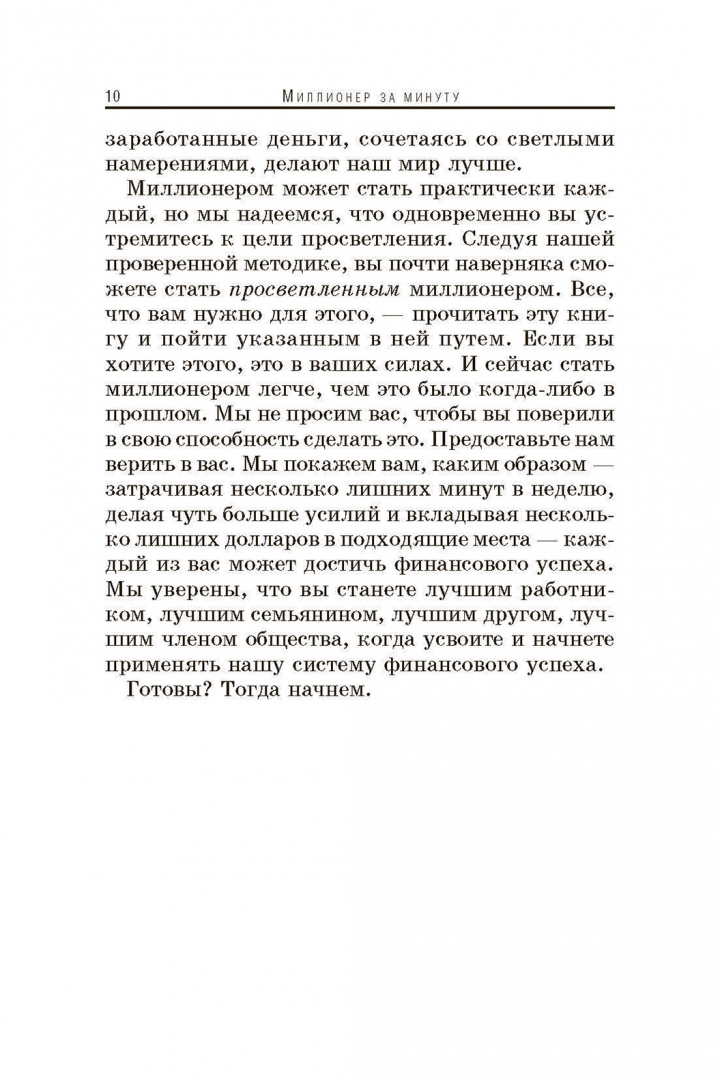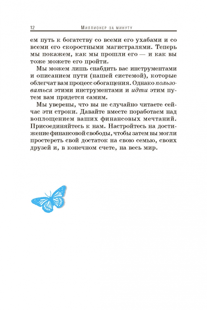 ОписаниеАвторы этой книги, многие годы обучающие людей принципам достижения богатства и успеха, раскрывают на ее страницах свои секреты. Они уже помогли тысячам людей стать миллионерами. Теперь - ваша очередь!Можно ли заработать миллион долларов за одну минуту? Ответ наверняка станет для вас сюрпризом. Книга "Миллионер за минуту" радикально меняет точку зрения на способы обогащения.Прочитав ее, вы сможете:* разбогатеть даже без начального капитала* использовать принцип рычага для скорейшего обогащения* преодолевать страхи и идти на разумный риск* выработать привычки, способствующие обогащению и сохранению богатстваМарк и Боб - гении. Я многому научился у них, и вы научитесь тоже! - Роберт КийосакиАвторы этой книги, многие годы обучающие людей принципам достижения богатства и успеха, раскрывают на ее страницах свои секреты. Они уже помогли тысячам людей стать миллионерами. Теперь - ваша очередь!Можно ли заработать миллион долларов за одну минуту? Ответ наверняка станет для вас сюрпризом. Книга "Миллионер за минуту" радикально меняет точку зрения на способы обогащения.Прочитав ее, вы сможете:* разбогатеть даже без начального капитала* использовать принцип рычага для скорейшего обогащения* преодолевать страхи и идти на разумный риск* выработать привычки, способствующие обогащению и сохранению богатстваМарк и Боб - гении. Я многому научился у них, и вы научитесь тоже! - Роберт Кийосаки