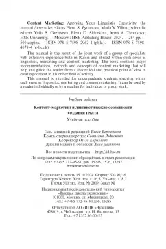 ОписаниеКонтент-маркетинг и лингвистические особенности создания текста. Учебное пособие и книга для преподавателяУчебное пособие и книга для преподавателя подготовлены специалистами в области лингвистики, маркетинга и контент-маркетинга, имеющими большой опыт работы в России и за рубежом. В пособии содержатся основные рекомендации, методы и концепции контент-маркетинга — как теоретические, так и практические, — которые помогут читателю в создании контента в сфере его деятельности.Книга для преподавателя дополняет и расширяет возможности и форматы работы с учебным пособием. В ней приведены дополнительные задания для разных режимов работы и включены ответы на задания учебного пособия, их облегченные версии и примеры их выполнения.Издания предназначены для студентов бакалавриата, обучающихся по таким направлениям, как лингвистика, маркетинг и контент-маркетинг, а также для преподавателей. Они могут быть использованы читателем самостоятельно либо преподавателем для индивидуальной или групповой работы и обучения.СвернутьКонтент-маркетинг и лингвистические особенности создания текста. Учебное пособие и книга для преподавателяУчебное пособие и книга для преподавателя подготовлены специалистами в области лингвистики, маркетинга и контент-маркетинга, имеющими большой опыт работы в России и за рубежом. В пособии содержатся основные рекомендации, методы и концепции контент-маркетинга — как теоретические, так и практические, — которые помогут читателю в создании контента в сфере его деятельности.Книга для преподавателя дополняет и расширяет возможности и форматы работы с учебным пособием. В ней приведены дополнительные задания для разных режимов работы и включены ответы на задания учебного пособия, их облегченные версии и примеры их выполнения.Издания предназначены для студентов бакалавриата, обучающихся по таким направлениям, как лингвистика, маркетинг и контент-маркетинг, а также для преподавателей. Они могут быть использованы читателем самостоятельно либо преподавателем для индивидуальной или групповой работы и обучения.СвернутьСвернуть