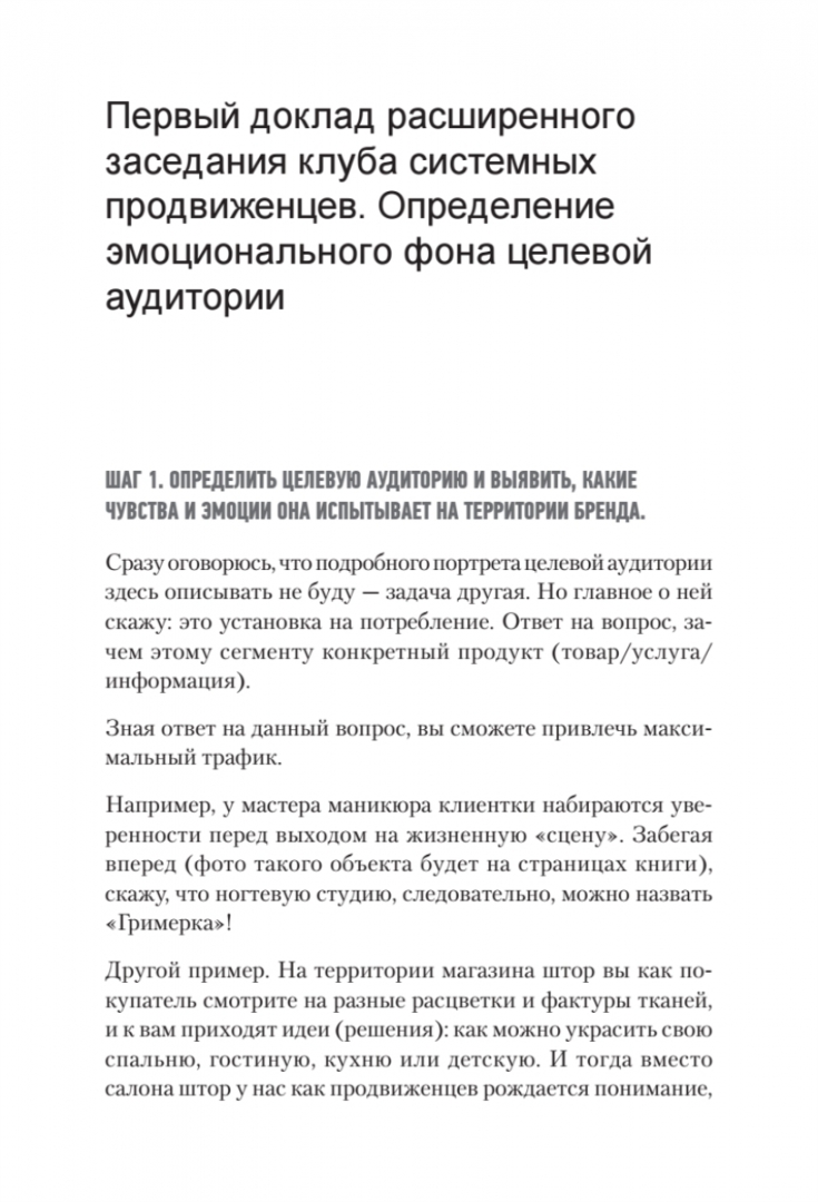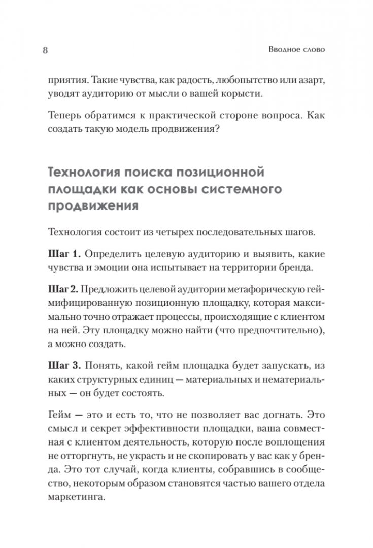 ОписаниеВ маркетинге можно скопировать почти все: цену, продукт, каналы товародвижения. Единственное, что остается неизменным - это история ваших взаимоотношений с клиентом, действия и эмоции - ваш общий гейм.Предложите клиенту уникальную историю взаимодействий, и вы получите особое конкурентное преимущество, ведь с другим брендом у клиента все будет по-другому.В книге представлена авторская модель системного продвижения, которая показывает, что раскручивать бренд можно одновременно и эффективно, и малобюджетно. В основу методики заложены поиск и создание позиционной площадки, что позволит включить клиента в игру и добиться его лояльности. Вы узнаете, как создать особый стиль жизни имени вашей торговой марки и дистанцировать ее от коммерческого восприятия. А также определите, какие ивенты должны происходить в созданном сообществе, чтобы оправдать ожидания клиентов.Издание адресовано маркетологам, владельцам малого и среднего бизнеса, самозанятым, а также преподавателям маркетинга и маркетинговых коммуникаций.СвернутьВ маркетинге можно скопировать почти все: цену, продукт, каналы товародвижения. Единственное, что остается неизменным - это история ваших взаимоотношений с клиентом, действия и эмоции - ваш общий гейм.Предложите клиенту уникальную историю взаимодействий, и вы получите особое конкурентное преимущество, ведь с другим брендом у клиента все будет по-другому.В книге представлена авторская модель системного продвижения, которая показывает, что раскручивать бренд можно одновременно и эффективно, и малобюджетно. В основу методики заложены поиск и создание позиционной площадки, что позволит включить клиента в игру и добиться его лояльности. Вы узнаете, как создать особый стиль жизни имени вашей торговой марки и дистанцировать ее от коммерческого восприятия. А также определите, какие ивенты должны происходить в созданном сообществе, чтобы оправдать ожидания клиентов.Издание адресовано маркетологам, владельцам малого и среднего бизнеса, самозанятым, а также преподавателям маркетинга и маркетинговых коммуникаций.СвернутьСвернуть