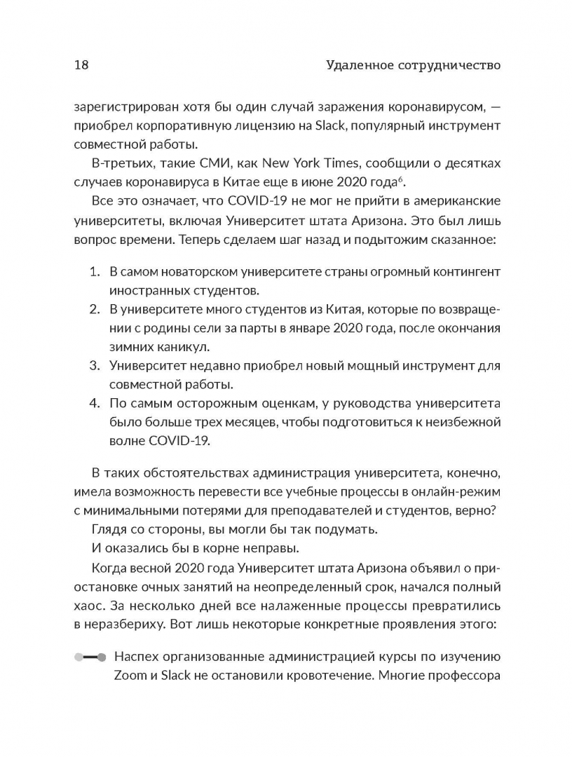 ОписаниеЕжедневно миллионы людей во всем мире используют Microsoft Teams, Slack, Zoom для удаленного сотрудничества, но не задействуют возможности этих программ на полную мощь и не понимают их огромных преимуществ. Автор предлагает новую и очень смелую модель совместной работы.Эта своевременная и заставляющая задуматься книга идеально подходит для специалистов по управлению персоналом, работников умственного труда, руководителей, удаленных работников и владельцев малых предприятий. В ней вы найдете конкретные рекомендации для компаний и групп о том, как можно преобразовать методы работы.Об автореФил Саймон - признанный оратор, динамичный тренер и консультант. Помогает организациям улучшать коммуникацию, совместную работу и более эффективно использовать технологии. О нем писали и рассказывали такие СМИ, как Harvard Business Review, MIT Sloan Management Review, Wired, NBC, CNBC, BusinessWeek и The New York Times. Он также ведет подкаст Conversations About Collaboration ("Беседы о сотрудничестве"). Это его одиннадцатая книга.СвернутьЕжедневно миллионы людей во всем мире используют Microsoft Teams, Slack, Zoom для удаленного сотрудничества, но не задействуют возможности этих программ на полную мощь и не понимают их огромных преимуществ. Автор предлагает новую и очень смелую модель совместной работы.Эта своевременная и заставляющая задуматься книга идеально подходит для специалистов по управлению персоналом, работников умственного труда, руководителей, удаленных работников и владельцев малых предприятий. В ней вы найдете конкретные рекомендации для компаний и групп о том, как можно преобразовать методы работы.Об автореФил Саймон - признанный оратор, динамичный тренер и консультант. Помогает организациям улучшать коммуникацию, совместную работу и более эффективно использовать технологии. О нем писали и рассказывали такие СМИ, как Harvard Business Review, MIT Sloan Management Review, Wired, NBC, CNBC, BusinessWeek и The New York Times. Он также ведет подкаст Conversations About Collaboration ("Беседы о сотрудничестве"). Это его одиннадцатая книга.СвернутьСвернуть