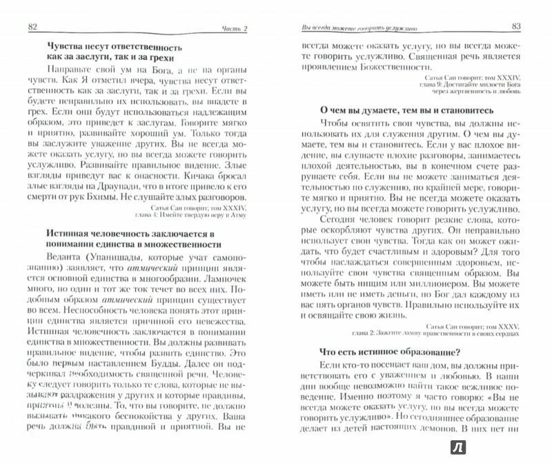 ОписаниеКнига представляет собой наставления Бхагавана Шри Сатья Саи Бабы о духовных принципах и величайших человеческих ценностях: Любви, Сострадании, Терпимости, Праведности. Она является незаменимым руководством для Ищущих, помогая преодолеть препятствия и трудности, возникающие на Внутреннем Пути к познанию Истины.Многие из нас задумываются над тем, как достичь контроля над умом, неуправляемыми эмоциями, которые разъедают наше сердце и обжигают других, словно раскаленное железо. Из этой книги вы узнаете, как совладать со своими эмоциями, обуздать свои желания, о двадцати добродетелях для мудрости и том, как зажечь лампу любви в своей душе.2-е издание.Книга представляет собой наставления Бхагавана Шри Сатья Саи Бабы о духовных принципах и величайших человеческих ценностях: Любви, Сострадании, Терпимости, Праведности. Она является незаменимым руководством для Ищущих, помогая преодолеть препятствия и трудности, возникающие на Внутреннем Пути к познанию Истины.Многие из нас задумываются над тем, как достичь контроля над умом, неуправляемыми эмоциями, которые разъедают наше сердце и обжигают других, словно раскаленное железо. Из этой книги вы узнаете, как совладать со своими эмоциями, обуздать свои желания, о двадцати добродетелях для мудрости и том, как зажечь лампу любви в своей душе.2-е издание.