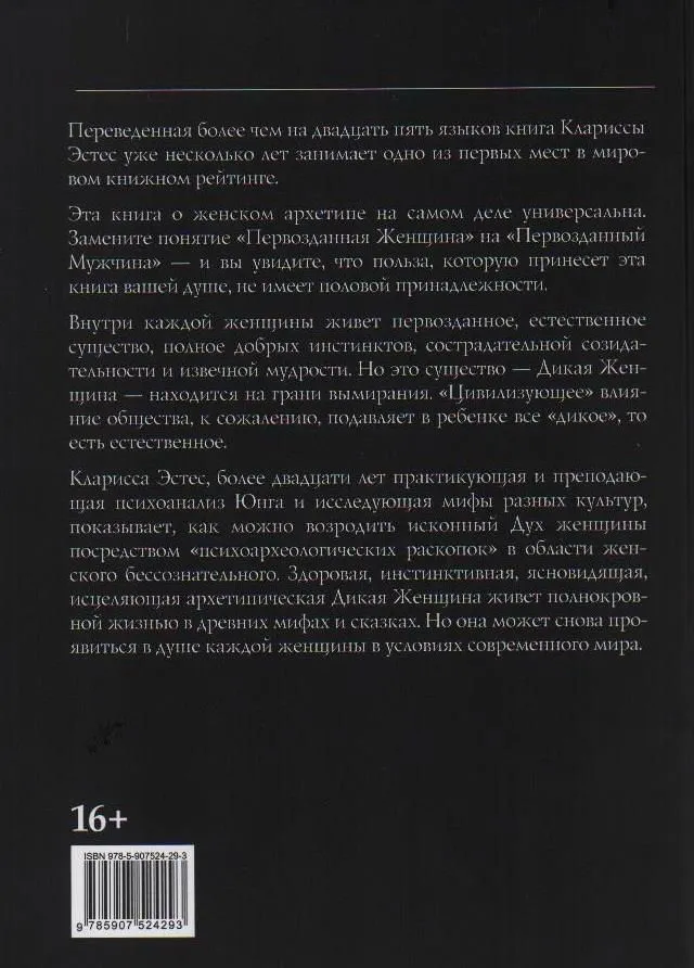 ОписаниеПереведенная более чем на двадцать пять языков книга Клариссы Эстес уже несколько лет занимает одно из первых мест в мировом книжном рейтинге. Эта книга о женском архетипе на самом деле универсальна. Замените понятие "Первозданная Женщина" на "Первозданный Мужчина" - и вы увидите, что польза, которую принесет эта книга вашей душе, не имеет половой принадлежности. Внутри каждой женщины живет первозданное, естественное существо, полное добрых инстинктов, сострадательной созидательности и извечной мудрости. Но это существо - Дикая Женщина - находится на грани вымирания. "Цивилизующее" влияние общества, к сожалению, подавляет в ребенке все "дикое", то естьестественное. Кларисса Эстес, более двадцати лет практикующая и преподающая психоанализ Юнга и исследующая мифы разных культур, показывает, как можно возродить исконный Дух женщины посредством "психоархеологических раскопок" в области женского бессознательного. Здоровая, инстинктивная, ясновидящая, исцеляющая...