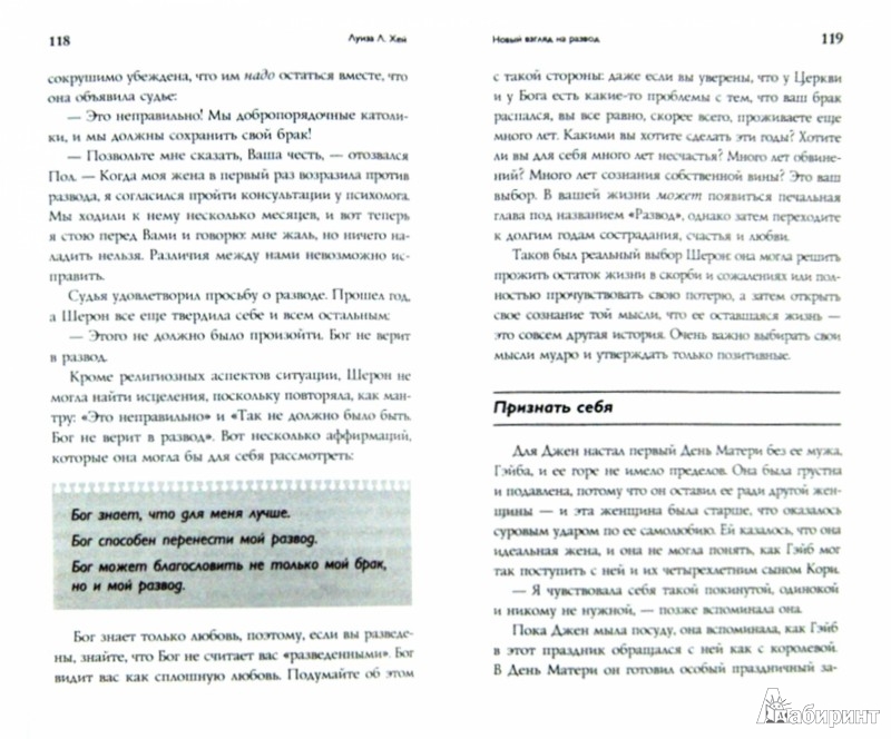 ОписаниеЛуиза Хей, автор международных бестселлеров, лектор-метафизик и психолог. По всему миру продано свыше 50 миллионов ее книг. Более 25 лет она помогает людям всего мира преодолеть физическую и психологическую боль.На собственном опыте проверив целительную силу аффирмаций, она предлагает этот эффективный способ работы над собой всем, чье сердце постигла боль утраты, кто пережил развод или расставание с любимым человеком, потерял работу или столкнулся с предательством. Эта книга способна оказать вам бесценную помощь в самые тяжелые моменты жизни - в ситуации, когда человек особенно уязвим и нуждается в сочувствии и исцелении от своей скорби. Здесь подробно рассмотрены разные проблемы с их особенностями. Не каждый в этом состоянии может обратиться за помощью к психологу. Поэтому для каждого конкретного случая авторы предлагают советы и множество полезных аффирмаций, помогающих не просто пережить горе, но и осознать, какой важный опыт с любовью преподносит ему жизнь.Среди реальных историй людей, переживших горе на собственном опыте, вы возможно найдете и свою, и в атмосфере доверия, сопереживания и поддержки, обретете душевный покой. Эти аффирмации помогут вам изменить свою жизнь, вернуть в нее спокойствие, любовь и счастье.СвернутьЛуиза Хей, автор международных бестселлеров, лектор-метафизик и психолог. По всему миру продано свыше 50 миллионов ее книг. Более 25 лет она помогает людям всего мира преодолеть физическую и психологическую боль.На собственном опыте проверив целительную силу аффирмаций, она предлагает этот эффективный способ работы над собой всем, чье сердце постигла боль утраты, кто пережил развод или расставание с любимым человеком, потерял работу или столкнулся с предательством. Эта книга способна оказать вам бесценную помощь в самые тяжелые моменты жизни - в ситуации, когда человек особенно уязвим и нуждается в сочувствии и исцелении от своей скорби. Здесь подробно рассмотрены разные проблемы с их особенностями. Не каждый в этом состоянии может обратиться за помощью к психологу. Поэтому для каждого конкретного случая авторы предлагают советы и множество полезных аффирмаций, помогающих не просто пережить горе, но и осознать, какой важный опыт с любовью преподносит ему жизнь.Среди реальных историй людей, переживших горе на собственном опыте, вы возможно найдете и свою, и в атмосфере доверия, сопереживания и поддержки, обретете душевный покой. Эти аффирмации помогут вам изменить свою жизнь, вернуть в нее спокойствие, любовь и счастье.СвернутьСвернуть