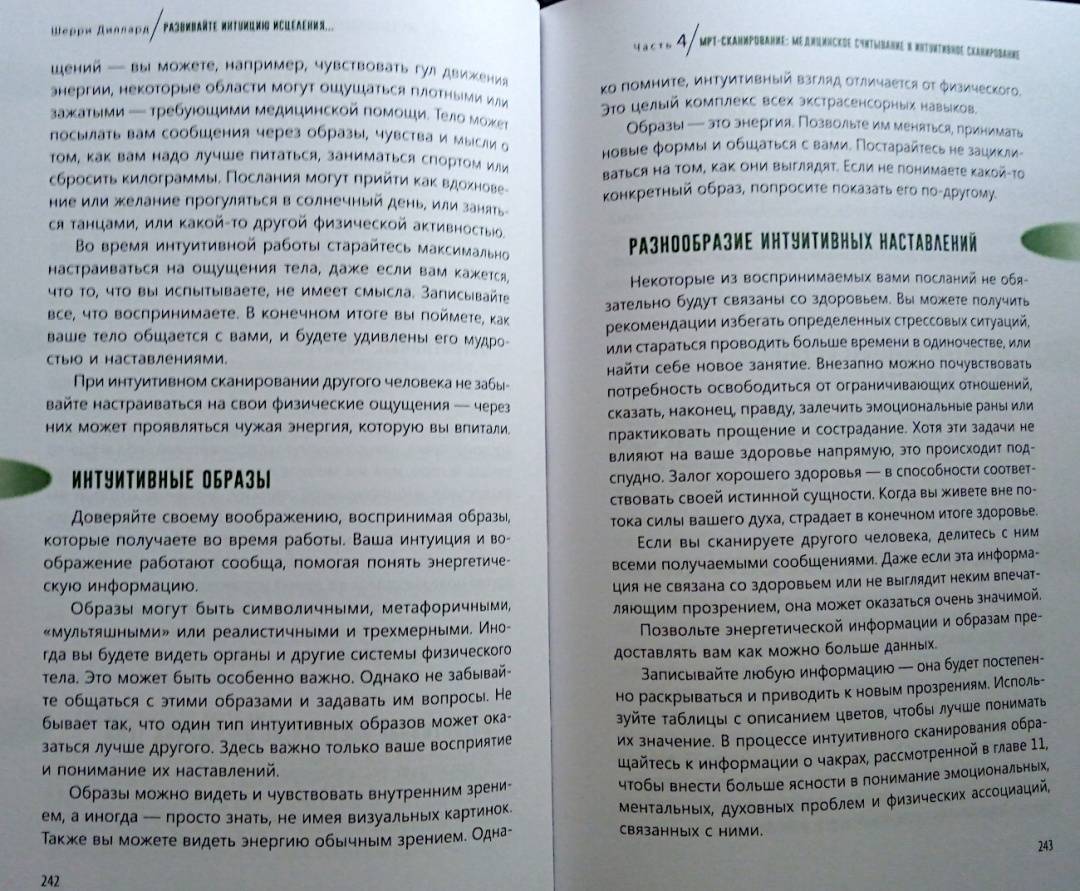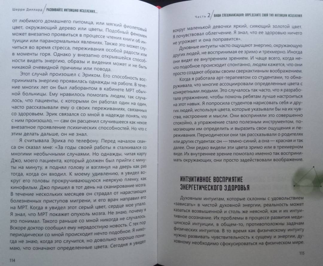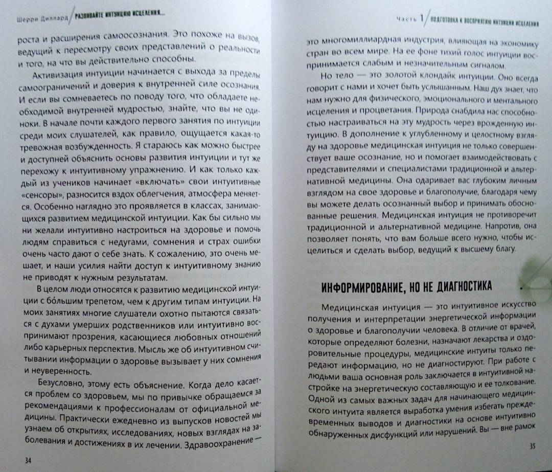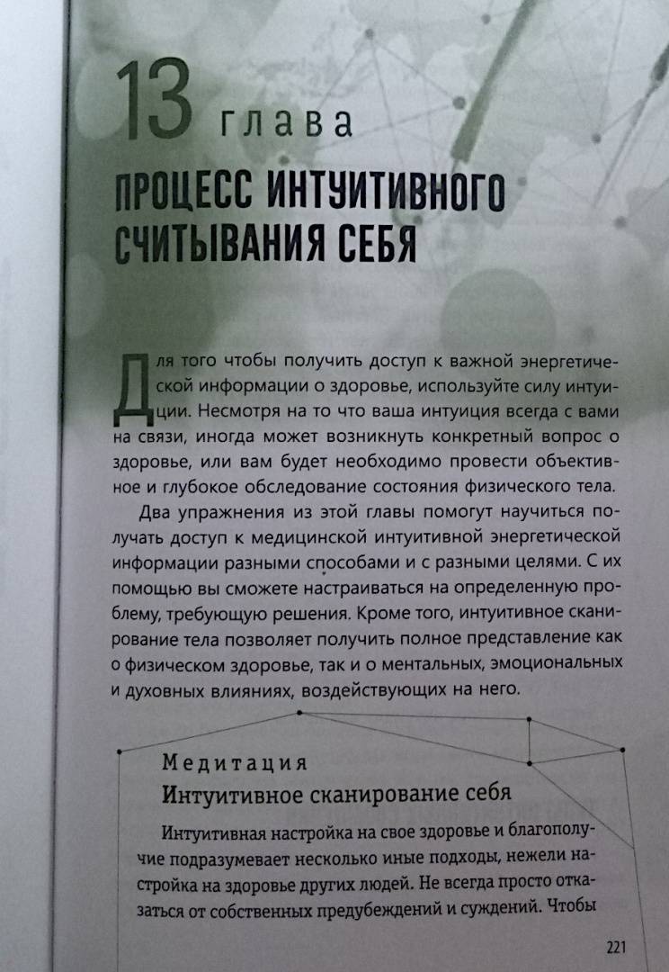ОписаниеМудрый внутренний голос нашего духа всегда действует через интуицию. Сон про болезнь или послание о состоянии здоровья, полученное от духа близкого человека, побуждают позаботиться о себе или записаться на медицинское обследование. Интуитивное осознание своего самочувствия - это дар каждого человека, который дается ему с рождения. У всех нас есть природная внутренняя сила, благодаря ей мы можем интуитивно воспринимать энергетическую информацию о том, что происходит с организмом. Так мы понимаем, как поддерживать оптимальный уровень здоровья и благополучия.Медицинский мир стремительно меняется. Сегодня никого не удивишь альтернативными методами лечения и терапии. Во многом подобная эволюция происходит благодаря людям, которые сумели выздороветь - они на себе испытали, как эмоции, мысли, отношения, духовность, ежедневный настрой могут влиять на здоровье и качество жизни. Это осознание помогает обретать силы для исцеления и поддерживать здоровье, интуитивно прислушиваясь к потребностям физического тела, залечивая эмоциональные раны, изменяя мысли и убеждения, открываясь силе духа.Шерри ДиллардО чем книгаО том, как научиться слышать послания интуиции о своем здоровье и заботиться о нем. Шерри Диллард, опытный медиум и знаменитый экстрасенс объясняет, как раскрыть в себе дар интуиции, данный от природы каждому. Когда вы определите тип своей интуиции - эмоциональный, физический, духовный или ментальный, то поймете, каким образом внутренний целитель передает вам информацию о состоянии здоровья. Через эмоции, ощущения в теле, духовные озарения или яснознание.Также вы найдете множество практических упражнений и медитаций, эффективность которых подтверждена в ходе целительской работы Диллард. Благодаря советам и рекомендациям автора вы научитесь отслеживать состояние своего организма и вовремя реагировать на ухудшение самочувствия. Вы узнаете:- как очистить свое энергетического поле от чужой токсичной энергии;- как вернуть себе силу, если чувствуете, что ослаблены и нет энергии- как уравновесить и привести в баланс тело, разум и дух;- как диагностировать и улучшать состояние ауры и чакр;- как осознать свою связь со Вселенной и обращаться к высшим силам за помощью в исцелении;- как настроиться на энергию пищи, чтобы получить максимум пользы от еды.Почему книгу стоит прочитатьКогда вы разовьете способность интуитивно оценивать состояние своего здоровья, то сможете принимать обоснованные решения, связанные с вашим самочувствием, тактикой лечения, выбором врачей. Вы станете более осознанными в отношениях со своим телом, будете понимать, что оно хочет сказать вам о своих потребностях. Больше отдыхать, избегать определенных занятий или общения с кем-либо, сменить рацион или режим. Вы научитесь поддерживать хорошее состояние энергетического здоровья, узнаете, как избегать или трансформировать негативную энергию боли, стресса, гнева или плохих вибраций окружающих людей и пространства. Сотрудничество с интуицией поможет соблюдать энергетический баланс тела и души и привлекать позитивную энергию - для здоровой и счастливой жизни.Для кого эта книгаКнига адресована тем, кто:- заботится о своем здоровье;- занимается целительством или применяет методы нетрадиционной медицины;- практикует различные способы работы с 