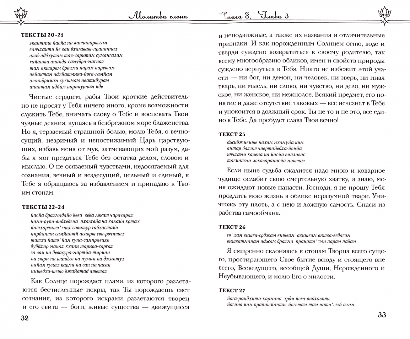 ОписаниеВ книге 8 "Становление" читатель найдет целый ряд легендарных историй, что приключились в незапамятные времена с вселенскими богами и их вечными противниками, демонами. Описание семейного древа ману, избавление царя слонов из пасти крокодила, пахтание богами и демонами молочного океана ради получения нектара бессмертия и избавление царя демонов Бали могущественным Коротышкой Ваманой - все эти истории приподнимают перед читателем покров тайны, коим сокрыты от нас законы мироздания. Книга 9 "Поколения" представляет собой описание славных деяний потомков вселенских прародителей, доблестных царей и их отпрысков, которые не только обладали сверхчеловеческими способностями, но и имели доступ в самые высокие сферы вселенной, о которых современный человек даже и не подозревает. Повествование начинается с описания удивительного случая с царем Амбаришей, после чего прослеживается вся ветвистая родословная правителей земли.В книге 8 "Становление" читатель найдет целый ряд легендарных историй, что приключились в незапамятные времена с вселенскими богами и их вечными противниками, демонами. Описание семейного древа ману, избавление царя слонов из пасти крокодила, пахтание богами и демонами молочного океана ради получения нектара бессмертия и избавление царя демонов Бали могущественным Коротышкой Ваманой - все эти истории приподнимают перед читателем покров тайны, коим сокрыты от нас законы мироздания. Книга 9 "Поколения" представляет собой описание славных деяний потомков вселенских прародителей, доблестных царей и их отпрысков, которые не только обладали сверхчеловеческими способностями, но и имели доступ в самые высокие сферы вселенной, о которых современный человек даже и не подозревает. Повествование начинается с описания удивительного случая с царем Амбаришей, после чего прослеживается вся ветвистая родословная правителей земли.