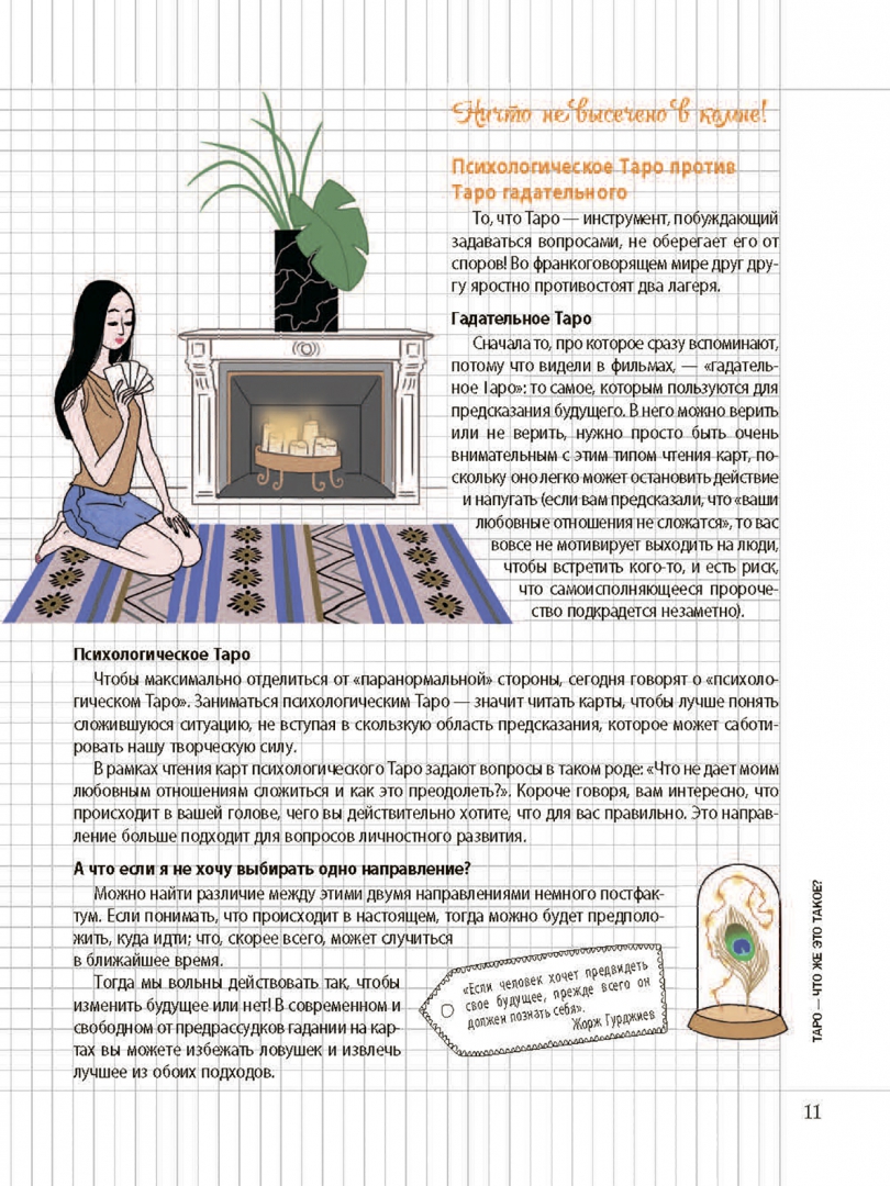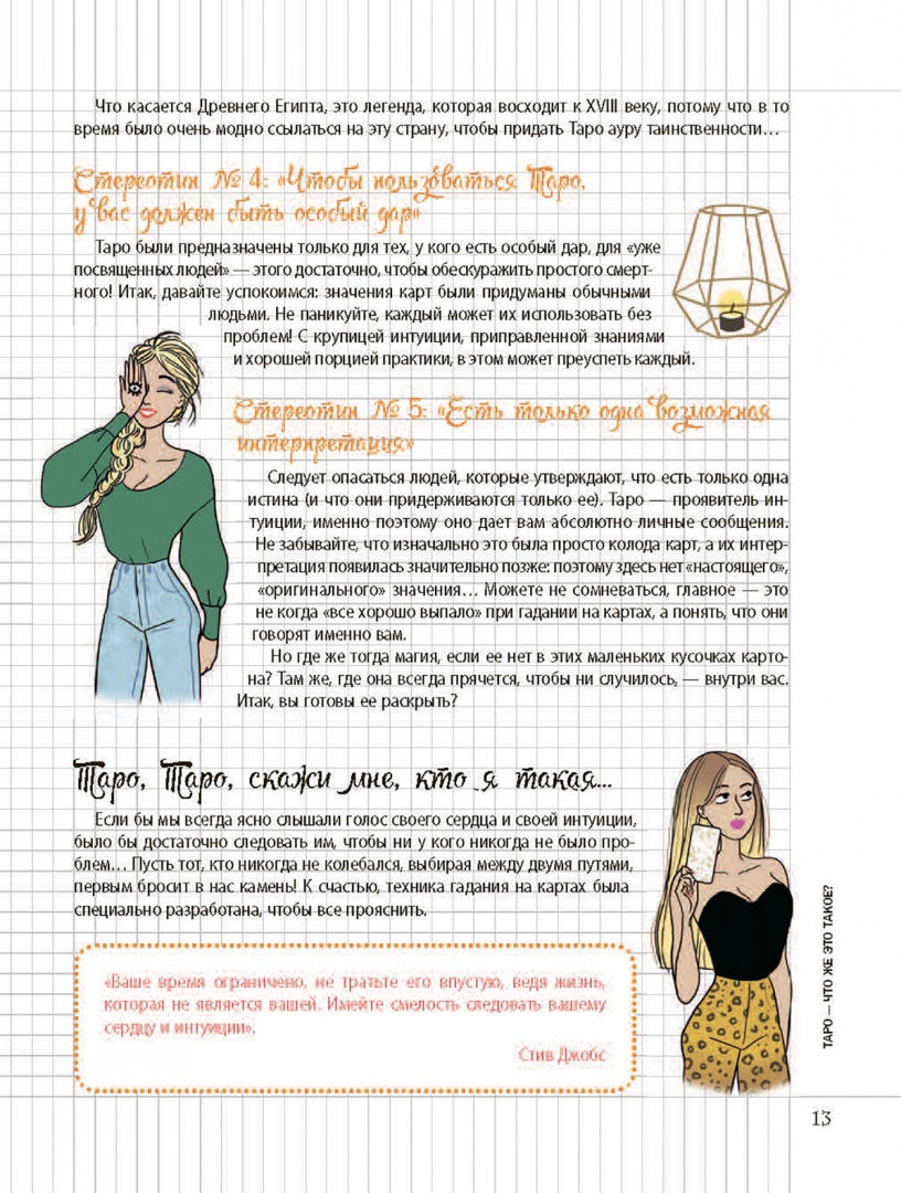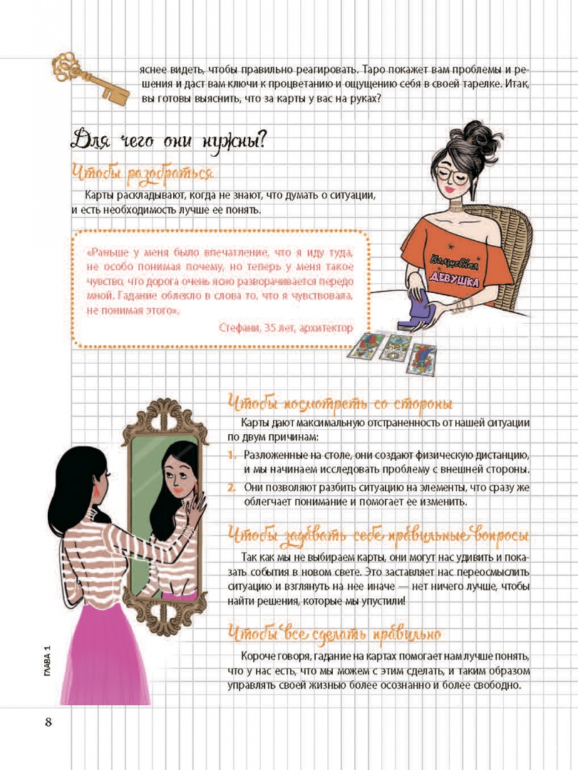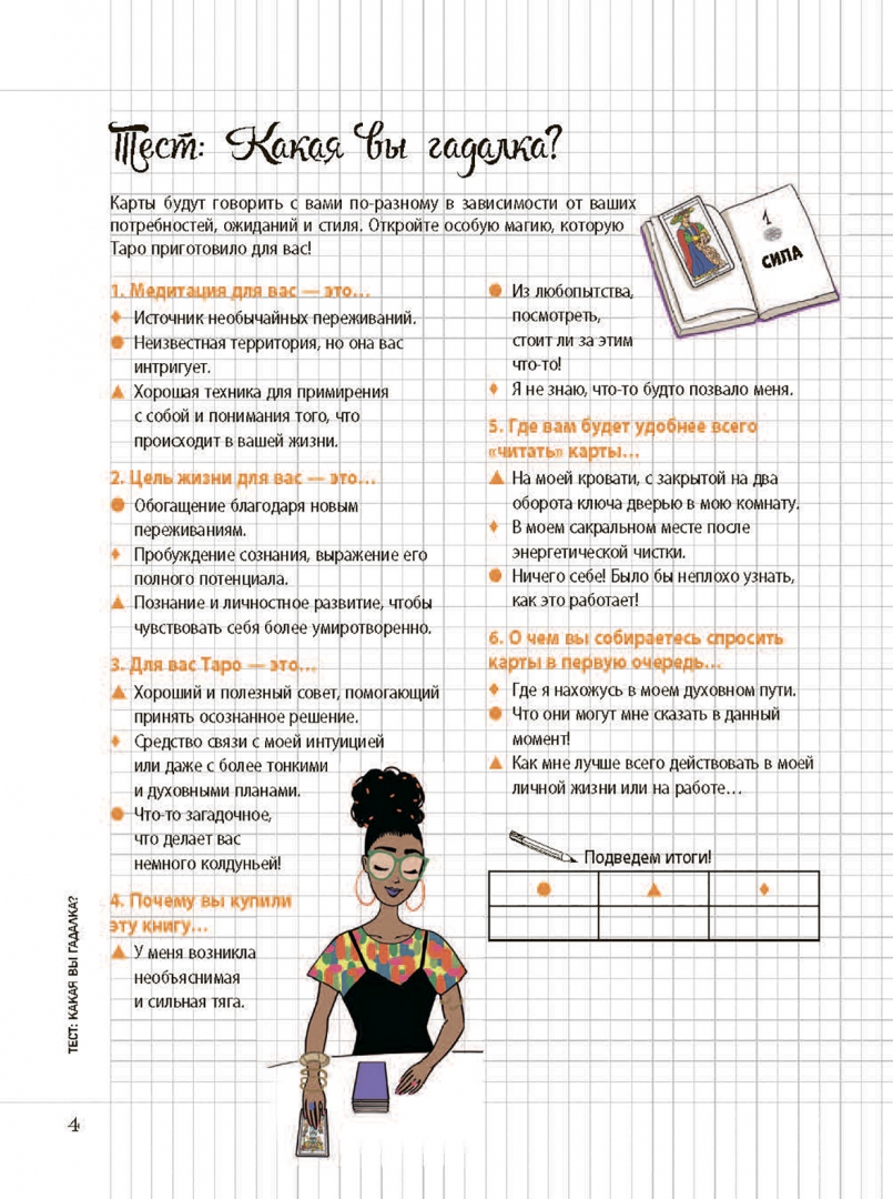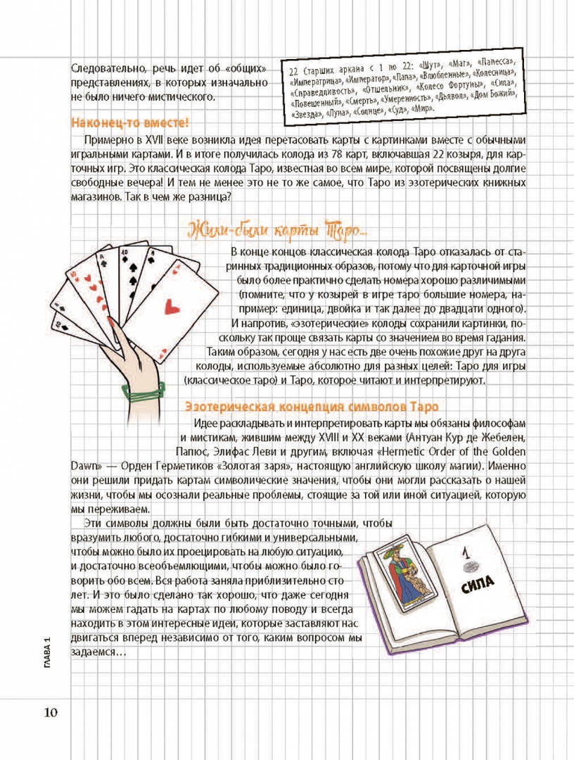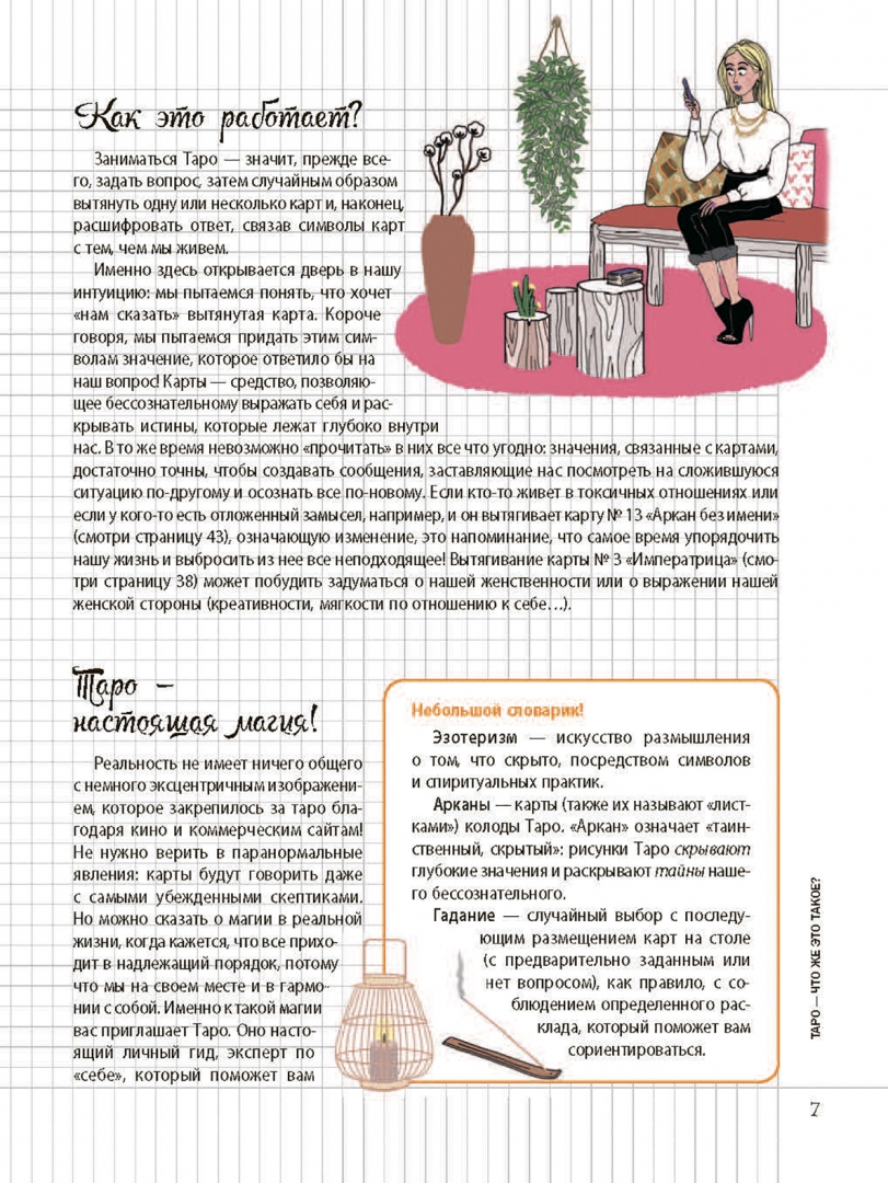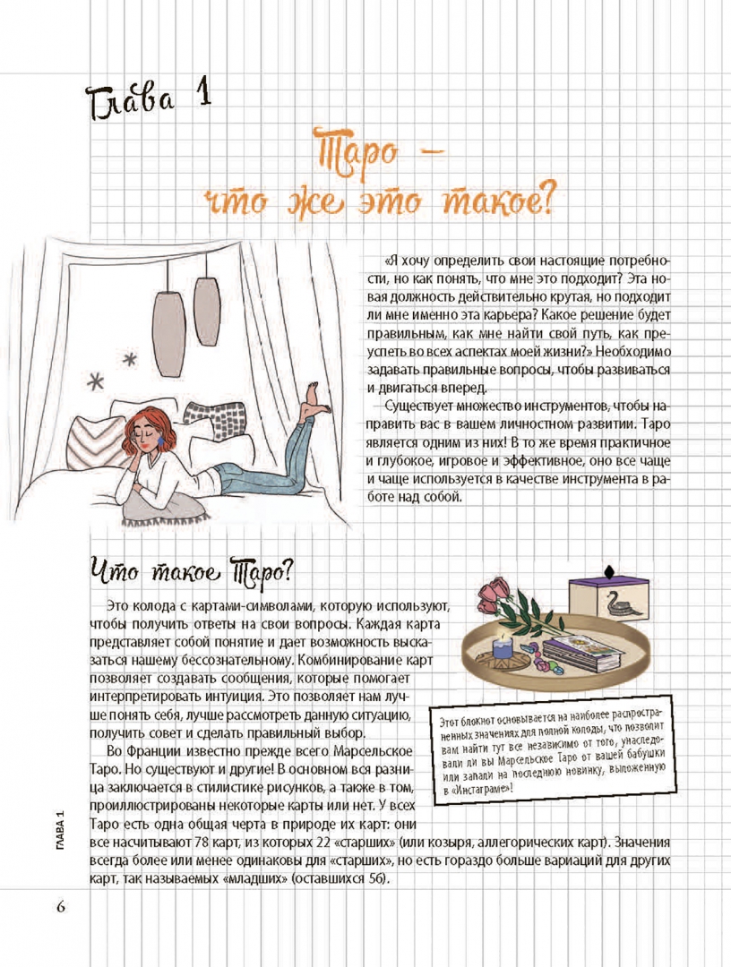 ОписаниеИнтерпретировать Таро в психологическом ключе — это возможно!Карты Таро могут служить прекрасным инструментом личностного развития, который умещается в дамскую сумочку. В чем смысл? Символы Таро — это подсказки интуиции, которые позволяют вашему бессознательному проявить себя, чтобы вы могли внимательнее прислушиваться к своим желаниям, быть в гармонии с собой, принимать правильные решения, прекрасно чувствовать себя и счастливо шагать по жизни. Это магия психологического Таро!Книга поможет вам:- Научиться пользоваться картами Таро. Выберите колоду, сформулируйте свой вопрос, приступите к гаданию, расшифруйте ответ. #ModernWitch- Интерпретировать символику карт — с помощью наших подсказок присвойте картам ваши собственные ключевые слова и выработайте индивидуальный стиль гадания.- Взять за привычку ежедневные небольшие ритуалы: утреннее гадание Таро, чтобы задать настроение дню, специальное время для Таро-медитаций, чтобы лучше понять себя, раскрыть свой потенциал и достичь внутренней гармонии… Заведите ритуал для каждой ситуации!- Продвигаться вперед по жизни благодаря специальным программам Таро для личностного роста, романтических отношений, жизненных вызовов… И вести дневник гаданий!Об автореЭмманюэль Иже — таролог, автор книг. Дает консультации в Париже, ведет многочисленные семинары и курсы для начинающихСвернутьИнтерпретировать Таро в психологическом ключе — это возможно!Карты Таро могут служить прекрасным инструментом личностного развития, который умещается в дамскую сумочку. В чем смысл? Символы Таро — это подсказки интуиции, которые позволяют вашему бессознательному проявить себя, чтобы вы могли внимательнее прислушиваться к своим желаниям, быть в гармонии с собой, принимать правильные решения, прекрасно чувствовать себя и счастливо шагать по жизни. Это магия психологического Таро!Книга поможет вам:- Научиться пользоваться картами Таро. Выберите колоду, сформулируйте свой вопрос, приступите к гаданию, расшифруйте ответ. #ModernWitch- Интерпретировать символику карт — с помощью наших подсказок присвойте картам ваши собственные ключевые слова и выработайте индивидуальный стиль гадания.- Взять за привычку ежедневные небольшие ритуалы: утреннее гадание Таро, чтобы задать настроение дню, специальное время для Таро-медитаций, чтобы лучше понять себя, раскрыть свой потенциал и достичь внутренней гармонии… Заведите ритуал для каждой ситуации!- Продвигаться вперед по жизни благодаря специальным программам Таро для личностного роста, романтических отношений, жизненных вызовов… И вести дневник гаданий!Об автореЭмманюэль Иже — таролог, автор книг. Дает консультации в Париже, ведет многочисленные семинары и курсы для начинающихСвернутьСвернуть