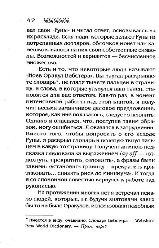 ОписаниеКнига, которую вы держите в руках, в своем роде уникальна. Можно по-разному к ней относиться (есть немало и восторженных ее поклонников, и яростных противников), но отрицать ее уникальность невозможно.Впервые увидев свет в 1982 году, "Книга Рун" сразу завладела вниманием множества людей, интересующихся самыми разными проблемами - от эзотерики до психоанализа и прикладной психологии. С тех пор она выдержала ряд переизданий, а суммарный тираж ее по всему миру приближается в настоящий момент к миллионной отметке.Книга, которую вы держите в руках, в своем роде уникальна. Можно по-разному к ней относиться (есть немало и восторженных ее поклонников, и яростных противников), но отрицать ее уникальность невозможно.Впервые увидев свет в 1982 году, "Книга Рун" сразу завладела вниманием множества людей, интересующихся самыми разными проблемами - от эзотерики до психоанализа и прикладной психологии. С тех пор она выдержала ряд переизданий, а суммарный тираж ее по всему миру приближается в настоящий момент к миллионной отметке.