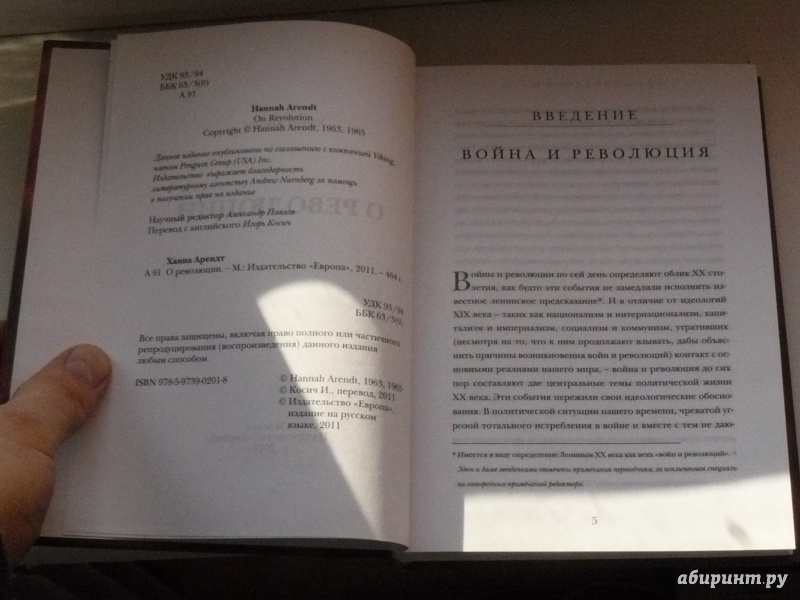 ОписаниеВойны и революции по сей день определяют облик ХХ столетия, как будто эти события не замедлили исполнить известное ленинское предсказание, что ХХ век - век "войн и революций". В политической ситуации нашего времени, чреватой угрозой тотального истребления в войне и вместе с тем не дающей угаснуть надежде на эмансипацию человечества путем революции - и поныне нет важного вопроса, с самого начала нашей истории определявшего основное содержание политики: свобода или тирания? В той мере, в какой насилие преобладает в войнах и революциях, они в строгом смысле слова оказываются вне политики, и это происходит даже несмотря на роль, которую они играли на протяжении всей истории человечества. Значимость этого факта и по сей день состоит в признании того, что политические взаимоотношения не устанавливаются сами собой и всегда, где живут люди вместе, и что существуют явления, которые, хотя и могут возникать в строго историческом контексте, на деле не являются политическими и даже могут вообще не иметь отношения к политике.СвернутьВойны и революции по сей день определяют облик ХХ столетия, как будто эти события не замедлили исполнить известное ленинское предсказание, что ХХ век - век "войн и революций". В политической ситуации нашего времени, чреватой угрозой тотального истребления в войне и вместе с тем не дающей угаснуть надежде на эмансипацию человечества путем революции - и поныне нет важного вопроса, с самого начала нашей истории определявшего основное содержание политики: свобода или тирания? В той мере, в какой насилие преобладает в войнах и революциях, они в строгом смысле слова оказываются вне политики, и это происходит даже несмотря на роль, которую они играли на протяжении всей истории человечества. Значимость этого факта и по сей день состоит в признании того, что политические взаимоотношения не устанавливаются сами собой и всегда, где живут люди вместе, и что существуют явления, которые, хотя и могут возникать в строго историческом контексте, на деле не являются политическими и даже могут вообще не иметь отношения к политике.СвернутьСвернуть