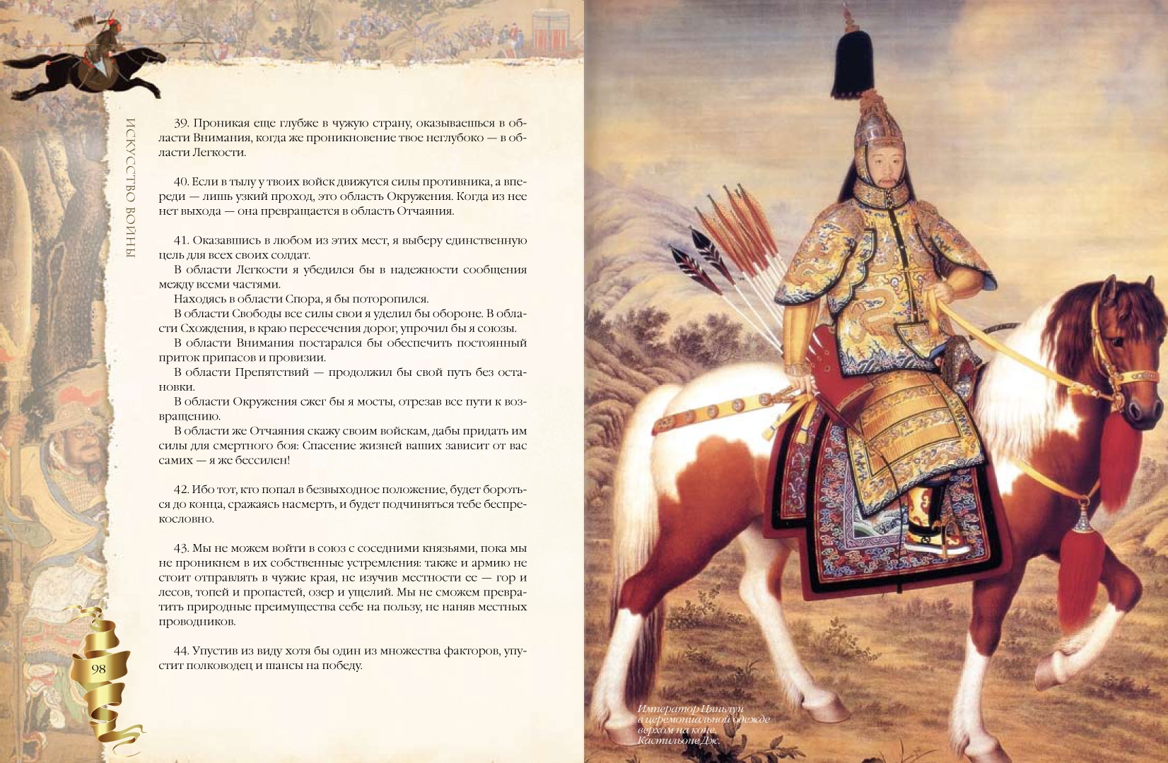 Описание"Искусство войны" - гениальное произведение легендарного китайского полководца и военного стратега Сунь Цзы (544-496 до н. э.). Этот военный трактат представляет собой универсальное руководство, в котором в лаконичной форме изложены главные принципы стратегии, тактики и философии войны. Основные правила военного искусства, созданные и примененные Сунь Цзы более двух тысяч лет назад, не потеряли актуальности и в наши дни. В издание также включены афоризмы и высказывания крупнейших китайских философов и полководцев о военном искусстве.Книга предназначена для всех, интересующихся военной историей и законами военного искусства."Искусство войны" - гениальное произведение легендарного китайского полководца и военного стратега Сунь Цзы (544-496 до н. э.). Этот военный трактат представляет собой универсальное руководство, в котором в лаконичной форме изложены главные принципы стратегии, тактики и философии войны. Основные правила военного искусства, созданные и примененные Сунь Цзы более двух тысяч лет назад, не потеряли актуальности и в наши дни. В издание также включены афоризмы и высказывания крупнейших китайских философов и полководцев о военном искусстве.Книга предназначена для всех, интересующихся военной историей и законами военного искусства.