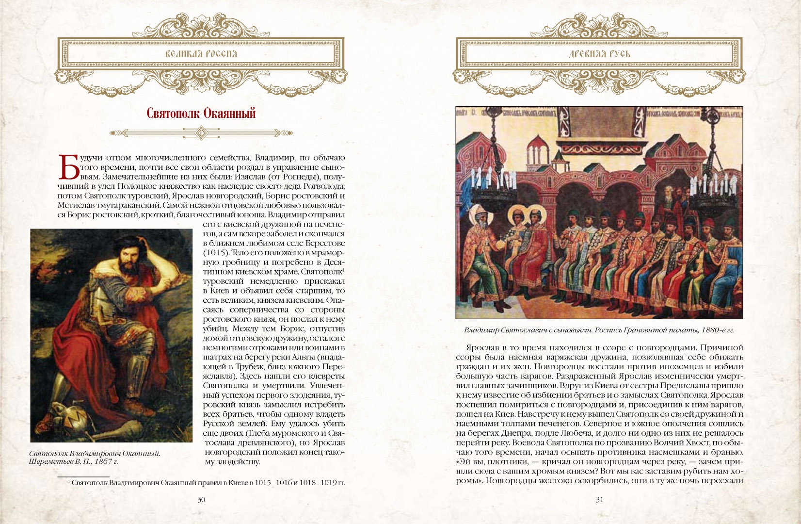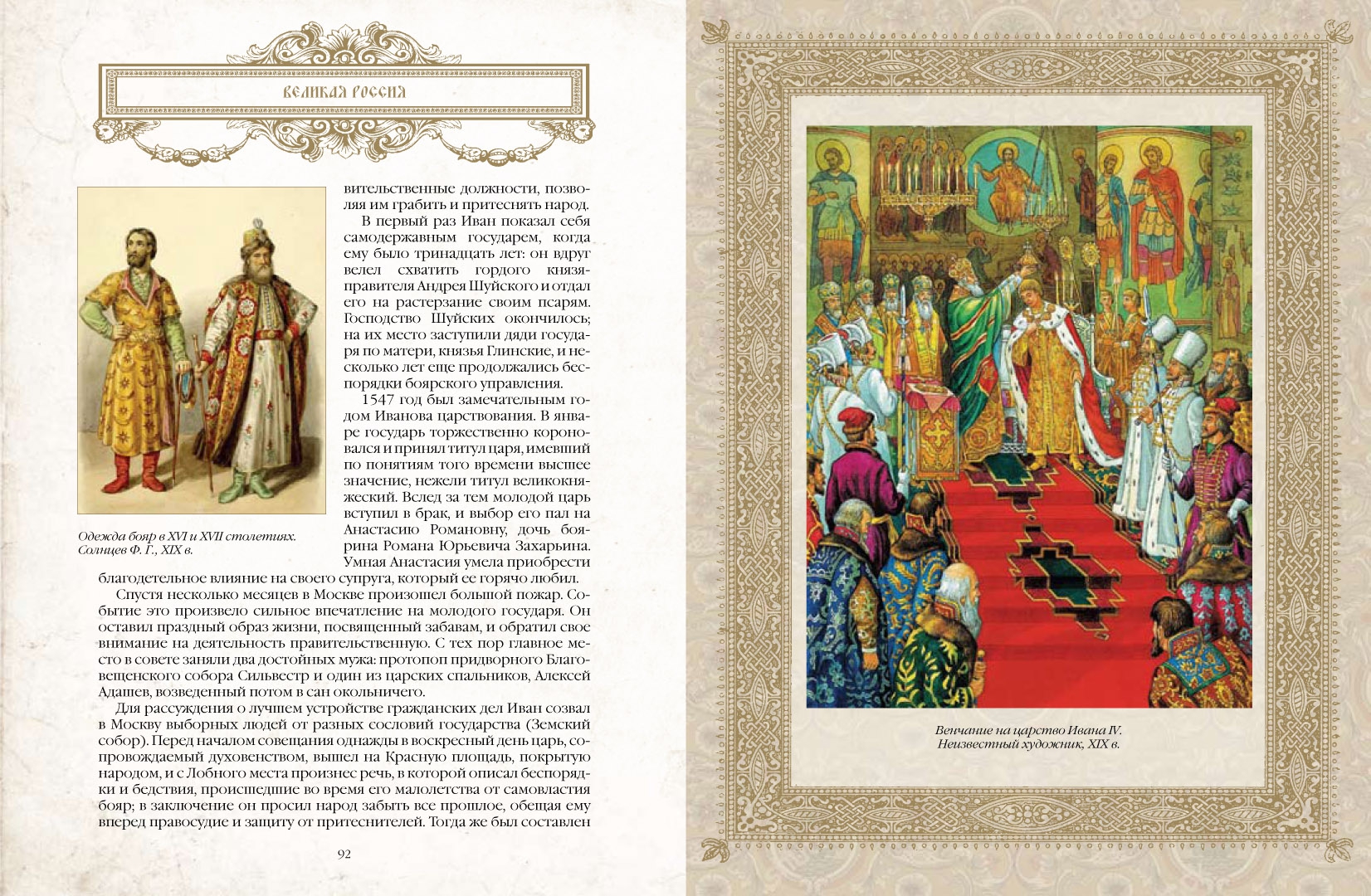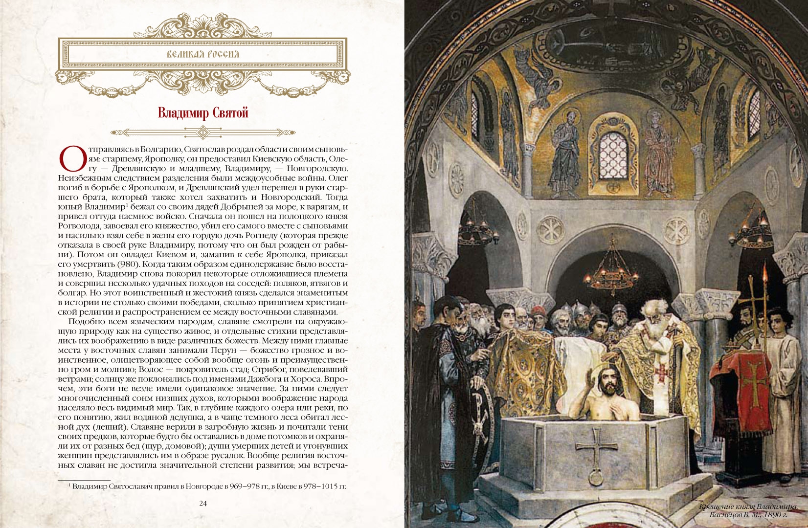 ОписаниеГлавная книга о тысячелетней истории России - от легендарного призвания основателя первой правящей династии Рюрика до великой Российской империи начала XX века! "Великая Россия" - квинтэссенция труда величайших русских историков за 300 лет: впервые в одной книге сведены и согласованы между собой данные всех главных книг по истории России - от легендарной "Русской истории" Михаила Ломоносова, работ Карамзина, Ключевского, Костомарова и Соловьева до трудов их продолжателей Дмитрия Иловайского и Сергея Платонова.Увлекательное повествование охватывает главнейшие этапы развития государства и важнейшие события, и судьбы исторических деятелей и правителей российской державы, олицетворяющих своими трудами, подвигами и именами наше государство.Книга красочно иллюстрирована произведениями классической живописи.Редактор-составитель И.А. Корешкин.Главная книга о тысячелетней истории России - от легендарного призвания основателя первой правящей династии Рюрика до великой Российской империи начала XX века! "Великая Россия" - квинтэссенция труда величайших русских историков за 300 лет: впервые в одной книге сведены и согласованы между собой данные всех главных книг по истории России - от легендарной "Русской истории" Михаила Ломоносова, работ Карамзина, Ключевского, Костомарова и Соловьева до трудов их продолжателей Дмитрия Иловайского и Сергея Платонова.Увлекательное повествование охватывает главнейшие этапы развития государства и важнейшие события, и судьбы исторических деятелей и правителей российской державы, олицетворяющих своими трудами, подвигами и именами наше государство.Книга красочно иллюстрирована произведениями классической живописи.Редактор-составитель И.А. Корешкин.