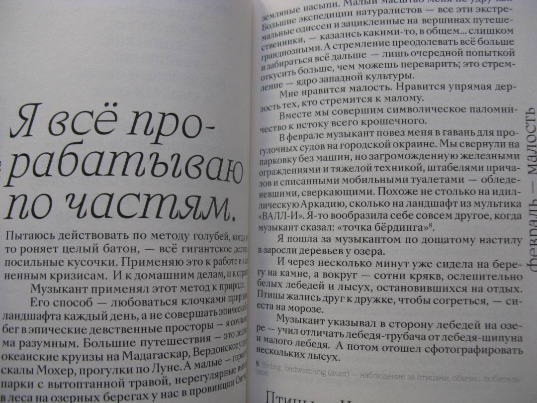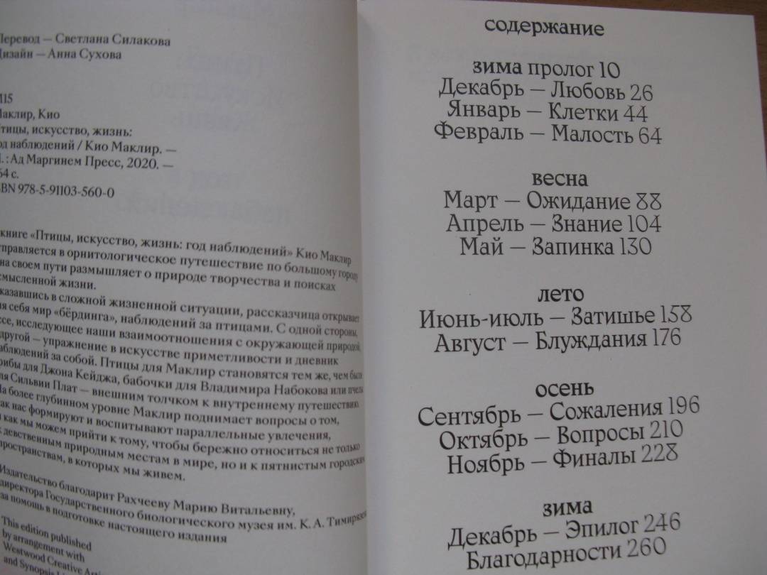 ОписаниеВ книге «Птицы, искусство, жизнь: год наблюдений» Кио Маклир отправляется в орнитологическое путешествие по большому городу и на своем пути размышляет о природе творчества и поисках осмысленной жизни.Оказавшись в сложной жизненной ситуации, рассказчица открывает для себя мир «бёрдинга», наблюдений за птицами. С одной стороны, эссе, исследующее наши взаимоотношения с окружающей природой, с другой — откровенный опыт автофикшн, упражнение в искусстве приметливости и дневник наблюдений за собой. Птицы для Маклир становятся тем же, чем были грибы для Джона Кейджа, бабочки для Владимира Набокова или пчелы для Сильвии Плат — внешним толчком к внутреннему путешествию. На более глубинном уровне Маклир поднимает вопросы о том, как нас формируют и воспитывают наши параллельные увлечения, и как мы можем прийти к тому, чтобы бережно относиться не только к девственным природным местам в мире, но и к пятнистым городским пространствам, в которых мы живем.В книге «Птицы, искусство, жизнь: год наблюдений» Кио Маклир отправляется в орнитологическое путешествие по большому городу и на своем пути размышляет о природе творчества и поисках осмысленной жизни.Оказавшись в сложной жизненной ситуации, рассказчица открывает для себя мир «бёрдинга», наблюдений за птицами. С одной стороны, эссе, исследующее наши взаимоотношения с окружающей природой, с другой — откровенный опыт автофикшн, упражнение в искусстве приметливости и дневник наблюдений за собой. Птицы для Маклир становятся тем же, чем были грибы для Джона Кейджа, бабочки для Владимира Набокова или пчелы для Сильвии Плат — внешним толчком к внутреннему путешествию. На более глубинном уровне Маклир поднимает вопросы о том, как нас формируют и воспитывают наши параллельные увлечения, и как мы можем прийти к тому, чтобы бережно относиться не только к девственным природным местам в мире, но и к пятнистым городским пространствам, в которых мы живем.