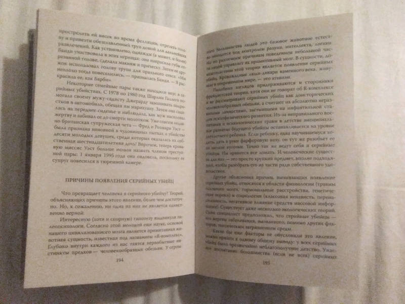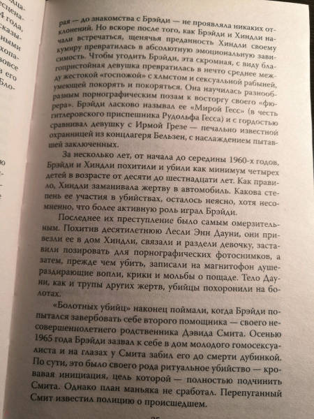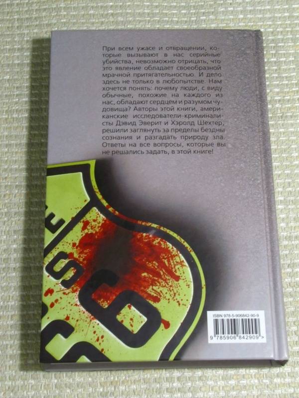 ОписаниеПри всем ужасе и отвращении, которые вызывают в нас серийные убийства, невозможно отрицать, что это явление обладает своеобразной мрачной притягательностью. И дело здесь не только в любопытстве. Нам хочется понять: почему люди, с виду обычные, похожие на каждого из нас, обладают сердцем и разумом чудовища? Авторы этой книги, американские исследователи-криминалисты Дэвид Эверит и Хэролд Шехтер, решили заглянуть за пределы бездны сознания и разгадать природу зла. Ответы на все вопросы, которые вы не решались задать, в этой книге!При всем ужасе и отвращении, которые вызывают в нас серийные убийства, невозможно отрицать, что это явление обладает своеобразной мрачной притягательностью. И дело здесь не только в любопытстве. Нам хочется понять: почему люди, с виду обычные, похожие на каждого из нас, обладают сердцем и разумом чудовища? Авторы этой книги, американские исследователи-криминалисты Дэвид Эверит и Хэролд Шехтер, решили заглянуть за пределы бездны сознания и разгадать природу зла. Ответы на все вопросы, которые вы не решались задать, в этой книге!