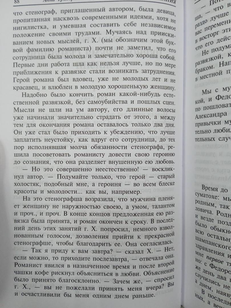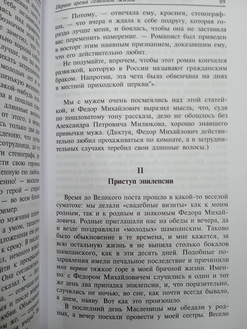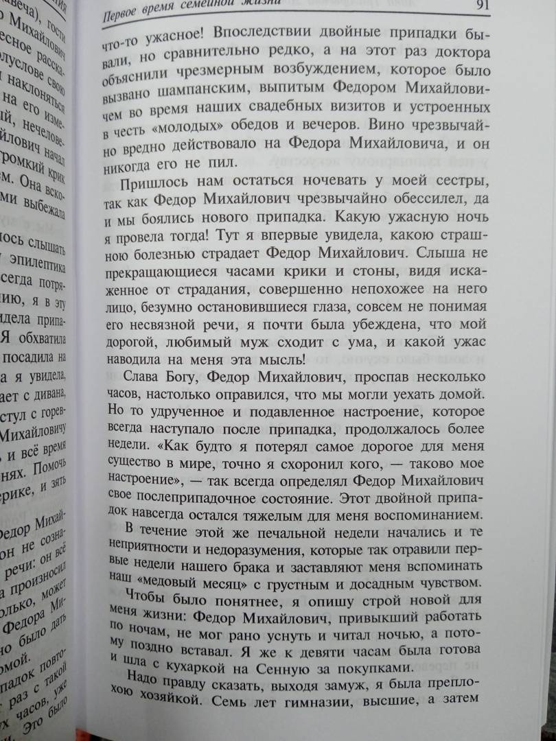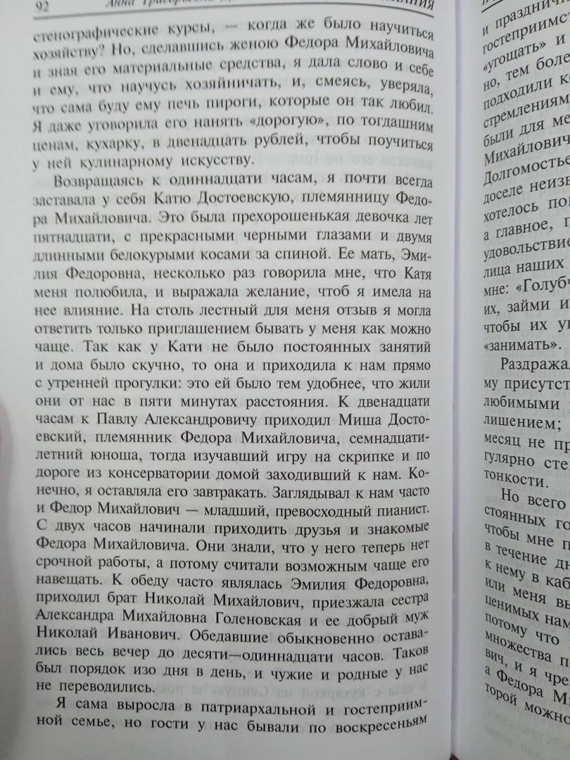 ОписаниеАнна Григорьевна Достоевская (1846-1918) была со своим мужем, по ее собственным словам, "различной конструкции, разного склада, несовпадающих воззрений", но они "всегда оставались собою, нимало не вторя и не подделываясь друг к другу". "Федор Михайлович, так много и одиноко мыслящий о глубоких вопросах человеческой души, вероятно, ценил это невмешательство в его душевную и умственную жизнь, а потому иногда говорил мне: "Ты единственная из женщин, которая поняла меня!" (то есть то, что для него было важнее всего). Его отношения ко мне всегда составляли какую-то "твердую стену", о которую (он чувствовал это) он может опереться или, вернее, к ней прислониться. И она "не уронит и согреет"".Анна Григорьевна Достоевская (1846-1918) была со своим мужем, по ее собственным словам, "различной конструкции, разного склада, несовпадающих воззрений", но они "всегда оставались собою, нимало не вторя и не подделываясь друг к другу". "Федор Михайлович, так много и одиноко мыслящий о глубоких вопросах человеческой души, вероятно, ценил это невмешательство в его душевную и умственную жизнь, а потому иногда говорил мне: "Ты единственная из женщин, которая поняла меня!" (то есть то, что для него было важнее всего). Его отношения ко мне всегда составляли какую-то "твердую стену", о которую (он чувствовал это) он может опереться или, вернее, к ней прислониться. И она "не уронит и согреет"".