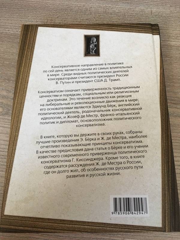 ОписаниеКонсервативное направление в политике по сей день является одним из самых влиятельных в мире. Среди видных политических деятелей консерваторами считаются президент России В. Путин и президент США Д. Трамп.Консерватизм означает приверженность традиционным ценностям и порядкам, социальным или религиозным доктринам. Это течение возникло как реакция на либеральные и революционные движения в мире; его основателями являются Эдмунд Бёрк, английский политический деятель, родоначальник консервативной идеологии, и Жозеф де Местр, франко-итальянский политик и дипломат, основоположник политического консерватизма.В книге, которую вы держите в своих руках, собраны лучшие произведения Э. Бёрка и Ж. де Местра, наиболее отчетливо показывающие принципы консерватизма. В качестве предисловия дана статья о Бёрке и его учении известного современного приверженца политического консерватизма Г. Киссинджера. Кроме того, в книге содержатся рассуждения Ж. де Местра о России, где он долго жил, об особенностях русского пути развития и русской жизни.СвернутьКонсервативное направление в политике по сей день является одним из самых влиятельных в мире. Среди видных политических деятелей консерваторами считаются президент России В. Путин и президент США Д. Трамп.Консерватизм означает приверженность традиционным ценностям и порядкам, социальным или религиозным доктринам. Это течение возникло как реакция на либеральные и революционные движения в мире; его основателями являются Эдмунд Бёрк, английский политический деятель, родоначальник консервативной идеологии, и Жозеф де Местр, франко-итальянский политик и дипломат, основоположник политического консерватизма.В книге, которую вы держите в своих руках, собраны лучшие произведения Э. Бёрка и Ж. де Местра, наиболее отчетливо показывающие принципы консерватизма. В качестве предисловия дана статья о Бёрке и его учении известного современного приверженца политического консерватизма Г. Киссинджера. Кроме того, в книге содержатся рассуждения Ж. де Местра о России, где он долго жил, об особенностях русского пути развития и русской жизни.СвернутьСвернуть