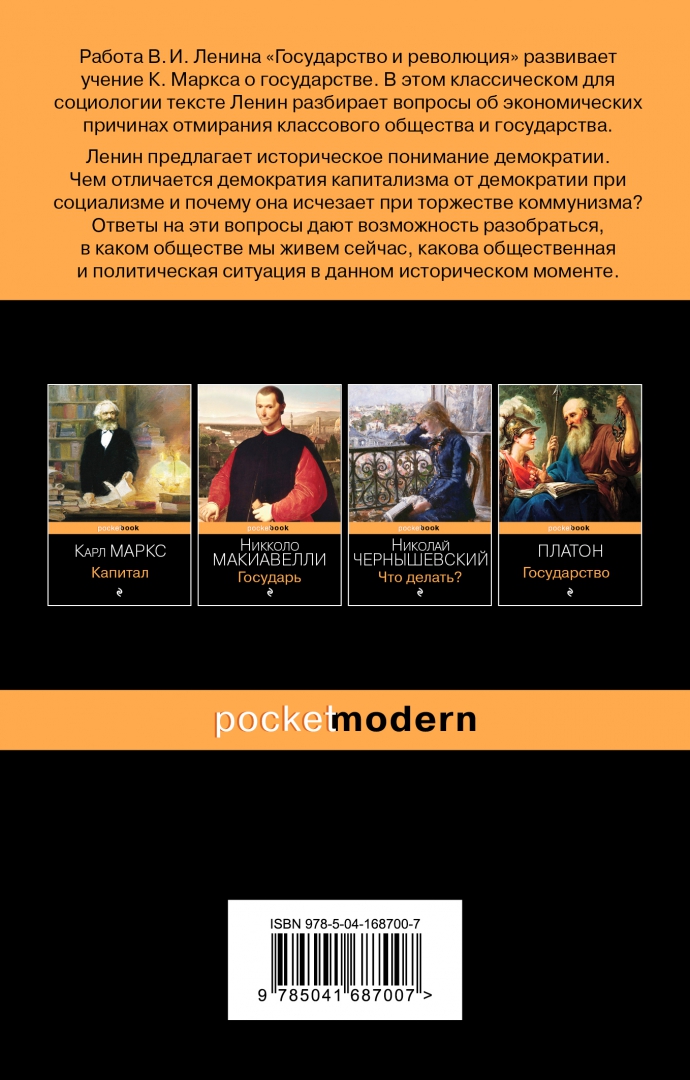 Объем, стр. 256 ISBN 978-5-04-168700-7 Автор Ленин Владимир Ильич Серия Pocket book Язык Русский Минимальный возраст 16+ Год издания книги 2022 Тип обложки Мягкий переплет Иллюстрации Без иллюстраций Вес, г 126г Размеры 180х116х11 мм - Отзывы