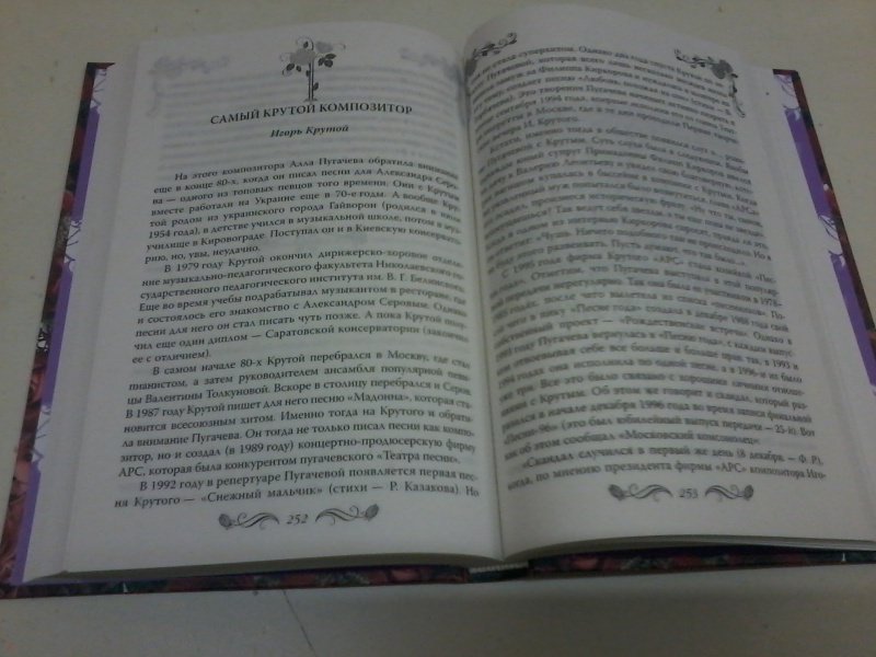 ОписаниеКак началось восхождение к славе звезды советской эстрады? Кто писал для будущей Примадонны стихи и музыку ее песен? Кто любил легендарную певицу и кого любила она? Документальная хроника Ф. Раззакова воссоздает жизнь Аллы Пугачевой буквально по дням, во всех подробностях, не утаивая ничего, вплоть до расхожих сплетен и слухов, всегда сопутствующих знаменитостям. При этом автор не ограничивается одной версией, а прибегает к нескольким источникам, освещая события жизни знаменитой певицы с разных сторон. Книга иллюстрирована уникальными фотографиями, в которых отражен жизненный путь "той женщины, которая поет…".Как началось восхождение к славе звезды советской эстрады? Кто писал для будущей Примадонны стихи и музыку ее песен? Кто любил легендарную певицу и кого любила она? Документальная хроника Ф. Раззакова воссоздает жизнь Аллы Пугачевой буквально по дням, во всех подробностях, не утаивая ничего, вплоть до расхожих сплетен и слухов, всегда сопутствующих знаменитостям. При этом автор не ограничивается одной версией, а прибегает к нескольким источникам, освещая события жизни знаменитой певицы с разных сторон. Книга иллюстрирована уникальными фотографиями, в которых отражен жизненный путь "той женщины, которая поет…".