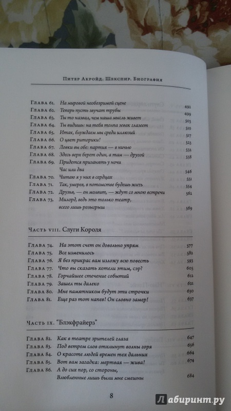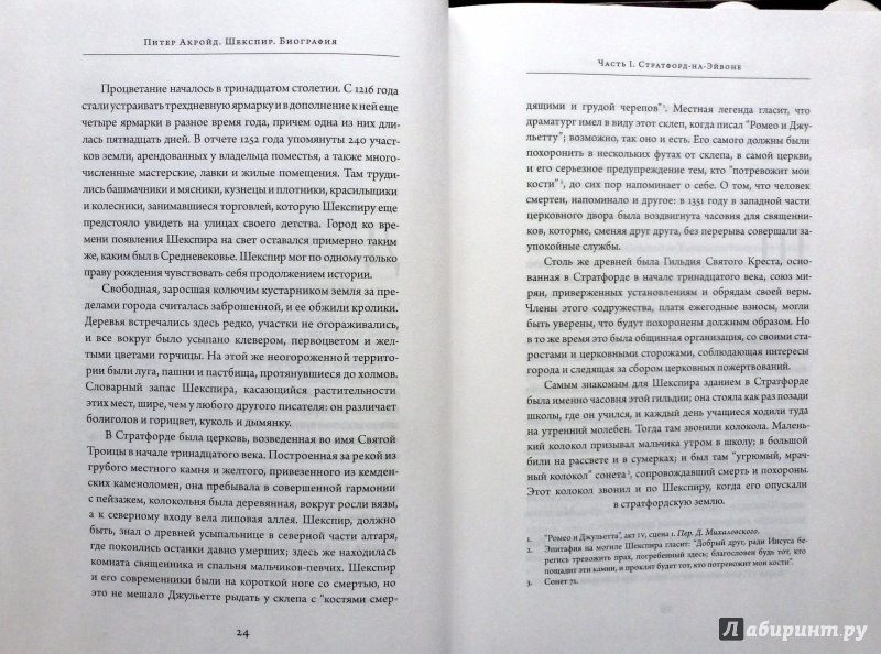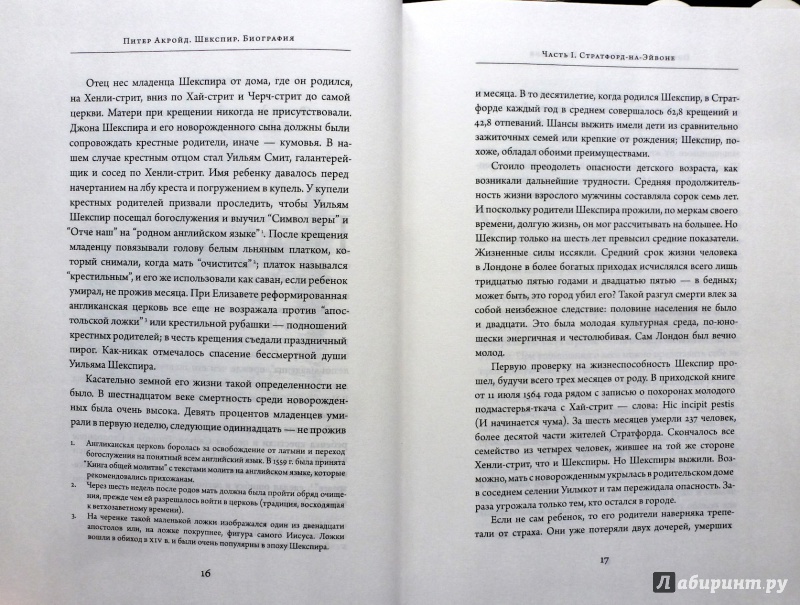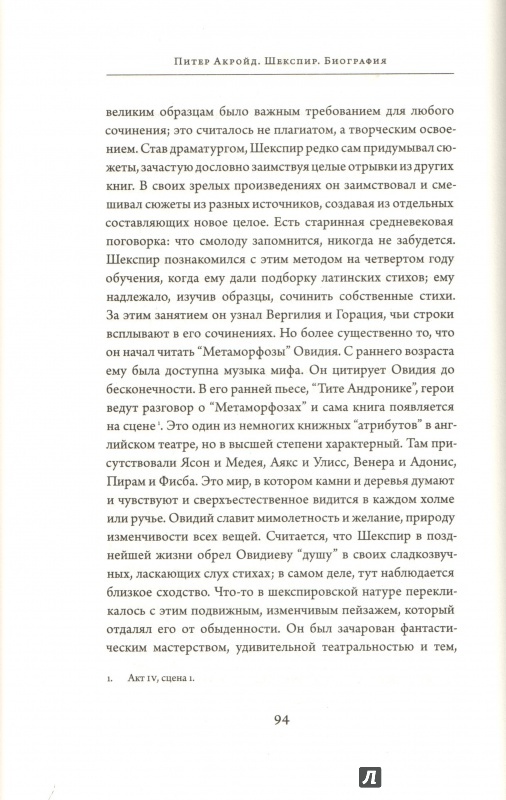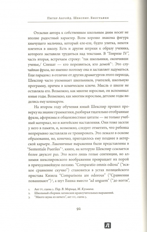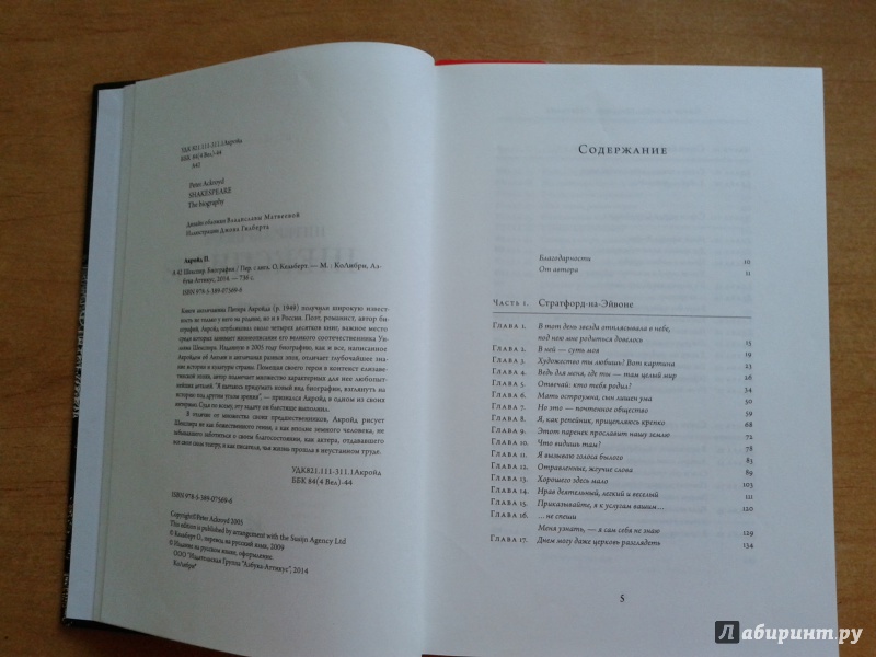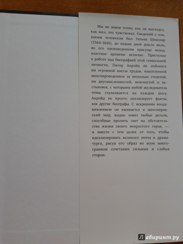 ОписаниеКниги англичанина Питера Акройда (р. 1949) получили широкую известность не только у него на родине, но и в России. Поэт, романист, автор биографий, Акройд опубликовал около четырех десятков книг, важное место среди которых занимает жизнеописание его великого соотечественника Уильяма Шекспира. Изданную в 2005 году биографию, как и все, написанное Акройдом об Англии и англичанах разных эпох, отличает глубочайшее знание истории и культуры страны. Помещая своего героя в контекст елизаветинской эпохи, автор подмечает множество характерных для нее любопытнейших деталей. "Я пытаюсь придумать новый вид биографии, взглянуть на историю под другим углом зрения", - признался Акройд в одном из своих интервью. Судя по всему, эту задачу он блестяще выполнил.В отличие от множества своих предшественников, Акройд рисует Шекспира не как божественного гения, а как вполне земного человека, не забывавшего заботиться о своем благосостоянии, как актера, отдававшего все свои силы театру, и как писателя, чья жизнь прошла в неустанном труде.СвернутьКниги англичанина Питера Акройда (р. 1949) получили широкую известность не только у него на родине, но и в России. Поэт, романист, автор биографий, Акройд опубликовал около четырех десятков книг, важное место среди которых занимает жизнеописание его великого соотечественника Уильяма Шекспира. Изданную в 2005 году биографию, как и все, написанное Акройдом об Англии и англичанах разных эпох, отличает глубочайшее знание истории и культуры страны. Помещая своего героя в контекст елизаветинской эпохи, автор подмечает множество характерных для нее любопытнейших деталей. "Я пытаюсь придумать новый вид биографии, взглянуть на историю под другим углом зрения", - признался Акройд в одном из своих интервью. Судя по всему, эту задачу он блестяще выполнил.В отличие от множества своих предшественников, Акройд рисует Шекспира не как божественного гения, а как вполне земного человека, не забывавшего заботиться о своем благосостоянии, как актера, отдававшего все свои силы театру, и как писателя, чья жизнь прошла в неустанном труде.СвернутьСвернуть