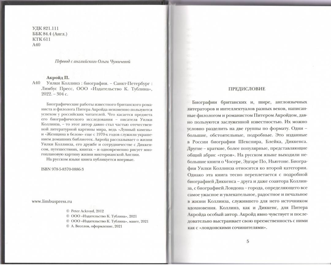ОписаниеБиографические работы известного британского романиста и филолога Питера Акройда неизменно пользуются успехом у российских читателей. Что касается предмета его биографического исследования - писателя Уилки Коллинза - то этот автор давно стал частью отечественной литературной "картины мира", ведь "Лунный камень" и "Женщина в белом" еще с 1970-х годов служили украшением домашних библиотек. Акройд рассказывает о жизни Уилки Коллинза, его дружбе и сотрудничестве с Диккенсом, путешествиях, книгах - и одновременно рисует многоплановую картину жизни викторианской Англии.На русском языке книга публикуется впервые.Биографические работы известного британского романиста и филолога Питера Акройда неизменно пользуются успехом у российских читателей. Что касается предмета его биографического исследования - писателя Уилки Коллинза - то этот автор давно стал частью отечественной литературной "картины мира", ведь "Лунный камень" и "Женщина в белом" еще с 1970-х годов служили украшением домашних библиотек. Акройд рассказывает о жизни Уилки Коллинза, его дружбе и сотрудничестве с Диккенсом, путешествиях, книгах - и одновременно рисует многоплановую картину жизни викторианской Англии.На русском языке книга публикуется впервые.