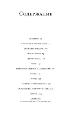 ОписаниеВ эту книгу вошли не только широко известные изречения Уинстона Черчилля, но и его небольшие философские притчи, а также полная сарказма полемика с политическими деятелями его времени. Большой интерес для читателей представляет раздел, где собраны афоризмы, приписываемые Черчиллю, - как, например, переходящая из уст в уста знаменитая фраза "…демократия - худшая форма правления, если не считать всех остальных, к которым до сих пор прибегало человечество".В эту книгу вошли не только широко известные изречения Уинстона Черчилля, но и его небольшие философские притчи, а также полная сарказма полемика с политическими деятелями его времени. Большой интерес для читателей представляет раздел, где собраны афоризмы, приписываемые Черчиллю, - как, например, переходящая из уст в уста знаменитая фраза "…демократия - худшая форма правления, если не считать всех остальных, к которым до сих пор прибегало человечество".
