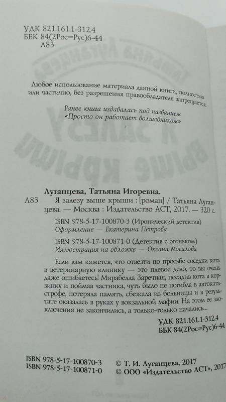 Объем, стр. 320 ISBN 978-5-17-100871-0 Автор Луганцева Татьяна Игоревна Серия Детектив с огоньком Минимальный возраст 16+ Год издания книги 2017 Тип обложки Мягкий переплет Иллюстрации Без иллюстраций Вес, г 194г Размеры 201х124х21 мм - Отзывы