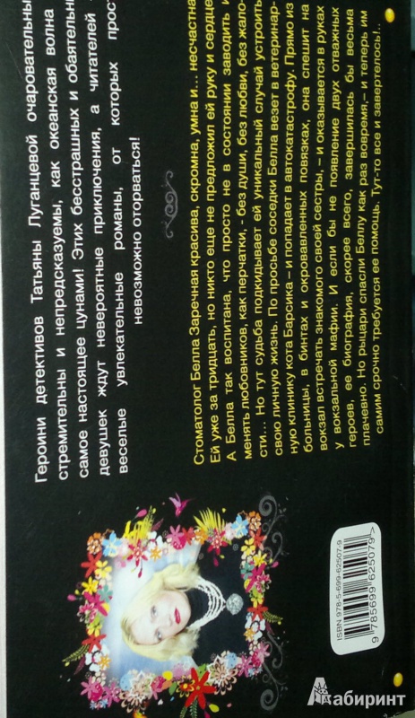 ОписаниеСтоматолог Белла Заречная красива, скромна, умна и… несчастна! Ей уже за тридцать, но никто еще не предложил ей руку и сердце. А Белла так воспитана, что просто не в состоянии заводить и менять любовников, как перчатки, - без души, без любви, без жалости… Но тут судьба подкидывает ей уникальный случай устроить свою личную жизнь. По просьбе соседки Белла везет в ветеринарную клинику кота Барсика - и попадает в автокатастрофу. Прямо из больницы, в бинтах и окровавленных повязках, она спешит на вокзал встречать знакомого своей сестры, - и оказывается в руках у вокзальной мафии. И если бы не появление двух отважных героев, ее биография, скорее всего, завершилась бы весьма плачевно. Но рыцари спасли Беллу как раз вовремя,- и теперь им самим срочно требуется ее помощь. Тут-то все и завертелось!..Стоматолог Белла Заречная красива, скромна, умна и… несчастна! Ей уже за тридцать, но никто еще не предложил ей руку и сердце. А Белла так воспитана, что просто не в состоянии заводить и менять любовников, как перчатки, - без души, без любви, без жалости… Но тут судьба подкидывает ей уникальный случай устроить свою личную жизнь. По просьбе соседки Белла везет в ветеринарную клинику кота Барсика - и попадает в автокатастрофу. Прямо из больницы, в бинтах и окровавленных повязках, она спешит на вокзал встречать знакомого своей сестры, - и оказывается в руках у вокзальной мафии. И если бы не появление двух отважных героев, ее биография, скорее всего, завершилась бы весьма плачевно. Но рыцари спасли Беллу как раз вовремя,- и теперь им самим срочно требуется ее помощь. Тут-то все и завертелось!..