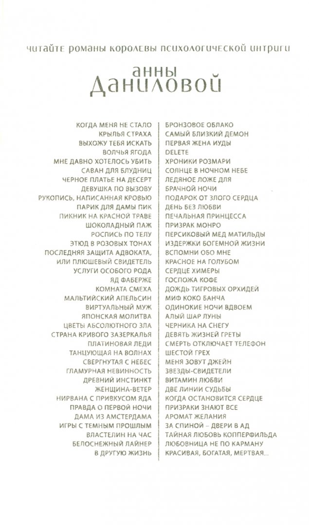 ---Анна Данилова: Дама из АмстердамаРусская классическая и современная литератураДетектив. Остросюжетная литератураЗарубежная художественная литератураРусская художественная литератураФэнтезиДраматургияПоэзияПриключенияФантастикаЭпос и фольклорКлассическая прозаАфоризмыИсторическая прозаДетективыБасниСентиментальная прозаОтечественный боевикСовременная прозаМолодежная литератураЗарубежная классическая и современная литература