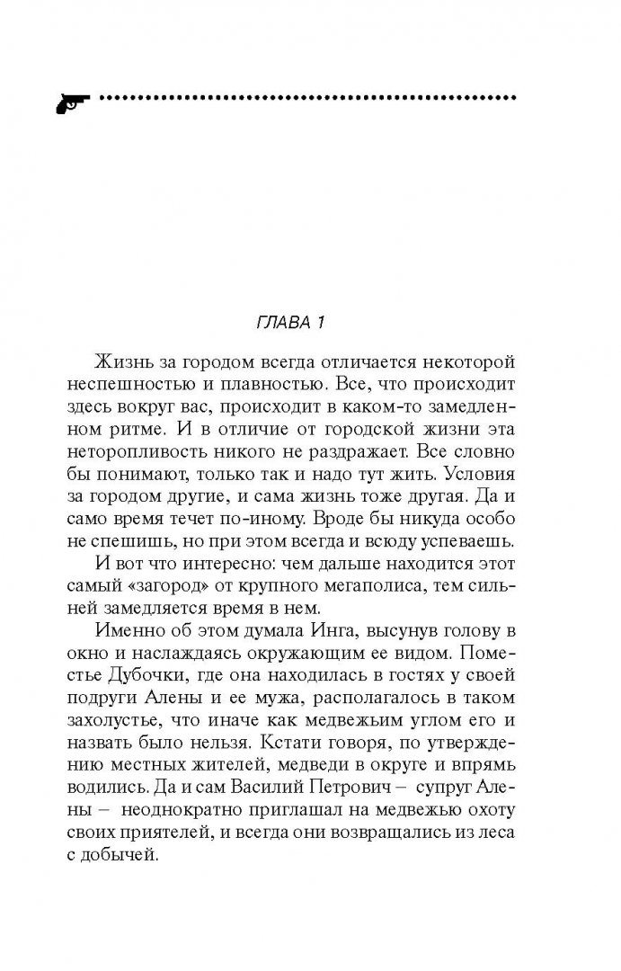 ОписаниеВ поместье "Дубочки", куда Инга приехала погостить к лучшей подруге Алене и ее мужу Василию, обстановка явно не способствовала спокойному отдыху. По утверждению подруги, здесь вот-вот должно было случиться что-то страшное, а сама она не далее, как сегодня, едва избежала смерти - на нее напало неизвестное науке чудовище, которое... никто, кроме самой Алены, не видел! Обратиться за помощью Инге, решившей разобраться в происходящем, не к кому: ее давний поклонник, начальник охраны Василия Ваня нашел новую пассию, молоденькую Нюшу, и полностью был поглощен своей личной жизнью. Потом люди вокруг начали погибать один за другим... Теперь Инге точно гарантирован привычный отдых - рискованные приключения!В поместье "Дубочки", куда Инга приехала погостить к лучшей подруге Алене и ее мужу Василию, обстановка явно не способствовала спокойному отдыху. По утверждению подруги, здесь вот-вот должно было случиться что-то страшное, а сама она не далее, как сегодня, едва избежала смерти - на нее напало неизвестное науке чудовище, которое... никто, кроме самой Алены, не видел! Обратиться за помощью Инге, решившей разобраться в происходящем, не к кому: ее давний поклонник, начальник охраны Василия Ваня нашел новую пассию, молоденькую Нюшу, и полностью был поглощен своей личной жизнью. Потом люди вокруг начали погибать один за другим... Теперь Инге точно гарантирован привычный отдых - рискованные приключения!