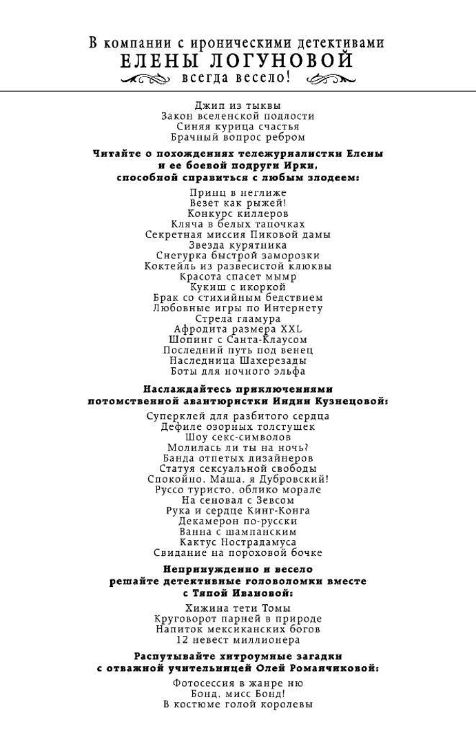 Объем, стр. 320 ISBN 978-5-04-097758-1 Автор Логунова Елена Ивановна Серия Смешные детективы Минимальный возраст 16+ Год издания книги 2019 Тип обложки Мягкий переплет Иллюстрации Без иллюстраций Вес, г 136г Размеры 165х107х20 мм - Отзывы