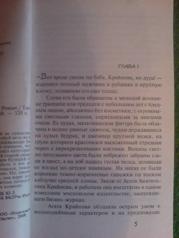 ОписаниеДля журналистки Агаты Крайневой не существует неразрешимых задач. Поставила перед собой цель во что бы то ни стало написать о бизнесмене Александре Берсеневе - значит, так оно и будет. И не страшно, что о нем никто ничего не знает, а сам Берсенев категорически отказывается от интервью! На своей старой раздолбанной "Оке" Агата проследила за героем будущей статьи и даже сумела хитростью проникнуть в его дом. А когда Александр вежливо с ней попрощался, покорно ушла через дверь, чтобы... вернуться в окно. Но, заканчивая скачивать данные с его компьютера, она вдруг услышала - в дом забрались какие-то непонятные личности и начали обсуждать, как половчее ограбить хозяина!..Для журналистки Агаты Крайневой не существует неразрешимых задач. Поставила перед собой цель во что бы то ни стало написать о бизнесмене Александре Берсеневе - значит, так оно и будет. И не страшно, что о нем никто ничего не знает, а сам Берсенев категорически отказывается от интервью! На своей старой раздолбанной "Оке" Агата проследила за героем будущей статьи и даже сумела хитростью проникнуть в его дом. А когда Александр вежливо с ней попрощался, покорно ушла через дверь, чтобы... вернуться в окно. Но, заканчивая скачивать данные с его компьютера, она вдруг услышала - в дом забрались какие-то непонятные личности и начали обсуждать, как половчее ограбить хозяина!..