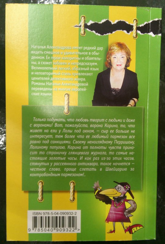 ОписаниеТолько подумать, что любовь творит с людьми и даже с воронами! Вот, пожалуйста, ворона Карина, та, что живет на ели у Лолы под окном, - сыр ее больше не интересует, тем более что ее любимый пармезан все равно под санкциями. Своему ненаглядному Перришону, Лолиному попугаю, Карина от полноты чувств приносит то страничку глянцевого журнала, то самые настоящие золотые часы. И как раз из-за этих часов, стянутых у рассеянного антиквара, такое начнется - честное слово, проще слетать в Швейцарию за контрабандным пармезаном!..Только подумать, что любовь творит с людьми и даже с воронами! Вот, пожалуйста, ворона Карина, та, что живет на ели у Лолы под окном, - сыр ее больше не интересует, тем более что ее любимый пармезан все равно под санкциями. Своему ненаглядному Перришону, Лолиному попугаю, Карина от полноты чувств приносит то страничку глянцевого журнала, то самые настоящие золотые часы. И как раз из-за этих часов, стянутых у рассеянного антиквара, такое начнется - честное слово, проще слетать в Швейцарию за контрабандным пармезаном!..