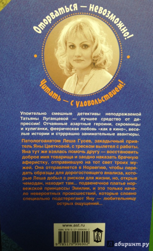 ОписаниеПатологоанатом Леша Гусев, закадычный приятель Яны Цветковой, с треском вылетел с работы. Яна тут же взялась помочь другу - восстановить доброе имя товарища и заодно наказать брачную аферистку, отправившую на тот свет троих мужей. Она отправляется в Норвегию, чтобы передать образцы для дорогостоящего анализа, которые Леша добыл с риском для жизни, но, открыв чемодан, находит там… подвенечное платье норвежской принцессы Эмилии, и это только начало невероятных происшествий, которые словно специально подстерегают Яну - любительницу острых ощущений…Патологоанатом Леша Гусев, закадычный приятель Яны Цветковой, с треском вылетел с работы. Яна тут же взялась помочь другу - восстановить доброе имя товарища и заодно наказать брачную аферистку, отправившую на тот свет троих мужей. Она отправляется в Норвегию, чтобы передать образцы для дорогостоящего анализа, которые Леша добыл с риском для жизни, но, открыв чемодан, находит там… подвенечное платье норвежской принцессы Эмилии, и это только начало невероятных происшествий, которые словно специально подстерегают Яну - любительницу острых ощущений…
