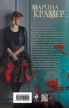 ОписаниеВ небольшом городке один за другим находят три трупа. Молодые мужчины, мужья и отцы, убиты странным орудием в область сердца. Мэр города Анита Комарец подозревает, что к убийствам причастны силы, не желающие видеть ее в мэрском кресле после очередных выборов. Да и собственная падчерица, фанатично увлеченная хризантемами Кику, тоже не дает расслабиться. Чтобы распутать этот странный клубок, в город приезжает следователь Полина Каргополова. Какие тайны она обнаружит среди опавших лепестков осенних хризантем?В небольшом городке один за другим находят три трупа. Молодые мужчины, мужья и отцы, убиты странным орудием в область сердца. Мэр города Анита Комарец подозревает, что к убийствам причастны силы, не желающие видеть ее в мэрском кресле после очередных выборов. Да и собственная падчерица, фанатично увлеченная хризантемами Кику, тоже не дает расслабиться. Чтобы распутать этот странный клубок, в город приезжает следователь Полина Каргополова. Какие тайны она обнаружит среди опавших лепестков осенних хризантем?