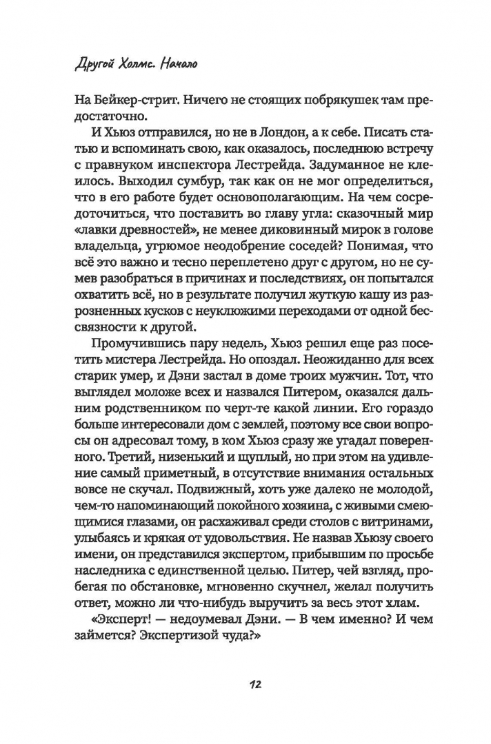 ОписаниеПервая книга серии - "Другой Холмс, или Великий сыщик глазами очевидцев. Начало" - связана с периодом зарождения славы Холмса. 1891 год. Лондон. В печати появляются рассказы о величайшем сыщике, подписанные неким А. К. Дойлом. Особая щепетильность ситуации состоит в том, что герои сюжетов не выдуманы. Шерлок Холмс и доктор Уотсон, инспектор Лестрейд и его коллеги из Скотленд-Ярда существуют в реальности, бок о бок с автором в Лондоне. Их связывают непростые отношения, и все они заинтригованы загадкой личности Дойла. Кто он? Каковы его цели? Чего больше в его творчестве - правды или вымысла?Первая книга серии - "Другой Холмс, или Великий сыщик глазами очевидцев. Начало" - связана с периодом зарождения славы Холмса. 1891 год. Лондон. В печати появляются рассказы о величайшем сыщике, подписанные неким А. К. Дойлом. Особая щепетильность ситуации состоит в том, что герои сюжетов не выдуманы. Шерлок Холмс и доктор Уотсон, инспектор Лестрейд и его коллеги из Скотленд-Ярда существуют в реальности, бок о бок с автором в Лондоне. Их связывают непростые отношения, и все они заинтригованы загадкой личности Дойла. Кто он? Каковы его цели? Чего больше в его творчестве - правды или вымысла?