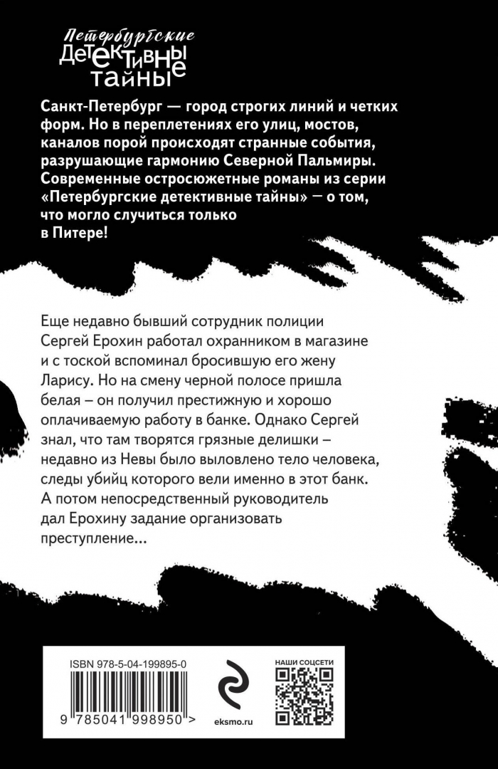 ОписаниеЕще недавно бывший сотрудник полиции Сергей Ерохин работал охранником в магазине и с тоской вспоминал бросившую его жену Ларису. Но на смену черной полосе пришла белая - он получил престижную и хорошо оплачиваемую работу в банке. Однако Сергей знал, что там творятся грязные делишки - недавно из Невы было выловлено тело человека, следы убийц которого вели именно в этот банк. А потом непосредственный руководитель дал Ерохину задание организовать преступление…Еще недавно бывший сотрудник полиции Сергей Ерохин работал охранником в магазине и с тоской вспоминал бросившую его жену Ларису. Но на смену черной полосе пришла белая - он получил престижную и хорошо оплачиваемую работу в банке. Однако Сергей знал, что там творятся грязные делишки - недавно из Невы было выловлено тело человека, следы убийц которого вели именно в этот банк. А потом непосредственный руководитель дал Ерохину задание организовать преступление…