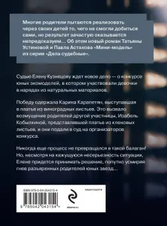ОписаниеВ свет выходит новый остросюжетный роман звездного дуэта Татьяны Устиновой и Павла Астахова из цикла «Дела судебные» — «Мини-модель». И по традиции - это увлекательный коктейль из жизненной драмы и крайне нетривиальной истории жизни одной, казалось бы, обычной женщины - Елены Кузнецовой и ее семьи. Интриги, сплетни, расследования – обо всем этом авторы повествуют с нотками изумительного тонкого юмора, который уже знаком читателю по их предыдущим романам. Там приятнее будет новая встреча с любимыми писателями и их героями — судьей Еленой Кузнецовой и ее неугомонной сестрой Наткой, вечно попадающей в разные передряги.В свет выходит новый остросюжетный роман звездного дуэта Татьяны Устиновой и Павла Астахова из цикла «Дела судебные» — «Мини-модель». И по традиции - это увлекательный коктейль из жизненной драмы и крайне нетривиальной истории жизни одной, казалось бы, обычной женщины - Елены Кузнецовой и ее семьи. Интриги, сплетни, расследования – обо всем этом авторы повествуют с нотками изумительного тонкого юмора, который уже знаком читателю по их предыдущим романам. Там приятнее будет новая встреча с любимыми писателями и их героями — судьей Еленой Кузнецовой и ее неугомонной сестрой Наткой, вечно попадающей в разные передряги.