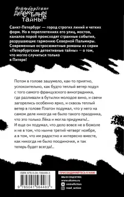 ОписаниеПотом в голове зашумело, как-то приятно, успокоительно, как будто теплый ветер подул с того самого французского виноградника, где разливали в бутылки молодое вино, и свечи загорелись особенно ярко, и сквозь теплый ветер в голове Платон подумал, что у него на самом деле никогда не было такого праздника, что это только Лёка и могла придумать!.. И еще он подумал, что дело вовсе не в божоле и не в том, что нынче третий четверг ноября, а в том, что им радостно и интересно вместе, как никогда не было поодиночке, и так теперь будет всегда!..Татьяна Устинова - один из топовых авторов современной российской прозы, обладатель двух премий "Электронная буква", лауреат "ТЭФИ" в номинации "Сценарист телевизионного фильма". "Первая среди лучших" - так называют Татьяну Витальевну, и это не просто остроумный эпитет, а звание, подтвержденное десятками написанных романов, успешными экранизациями и, конечно, любовью многочисленных поклонников ее творчества.Потом в голове зашумело, как-то приятно, успокоительно, как будто теплый ветер подул с того самого французского виноградника, где разливали в бутылки молодое вино, и свечи загорелись особенно ярко, и сквозь теплый ветер в голове Платон подумал, что у него на самом деле никогда не было такого праздника, что это только Лёка и могла придумать!.. И еще он подумал, что дело вовсе не в божоле и не в том, что нынче третий четверг ноября, а в том, что им радостно и интересно вместе, как никогда не было поодиночке, и так теперь будет всегда!..Татьяна Устинова - один из топовых авторов современной российской прозы, обладатель двух премий "Электронная буква", лауреат "ТЭФИ" в номинации "Сценарист телевизионного фильма". "Первая среди лучших" - так называют Татьяну Витальевну, и это не просто остроумный эпитет, а звание, подтвержденное десятками написанных романов, успешными экранизациями и, конечно, любовью многочисленных поклонников ее творчества.